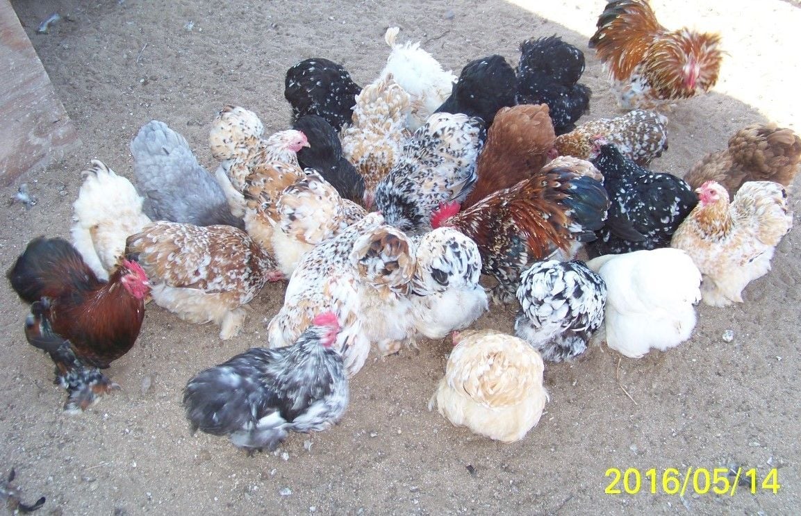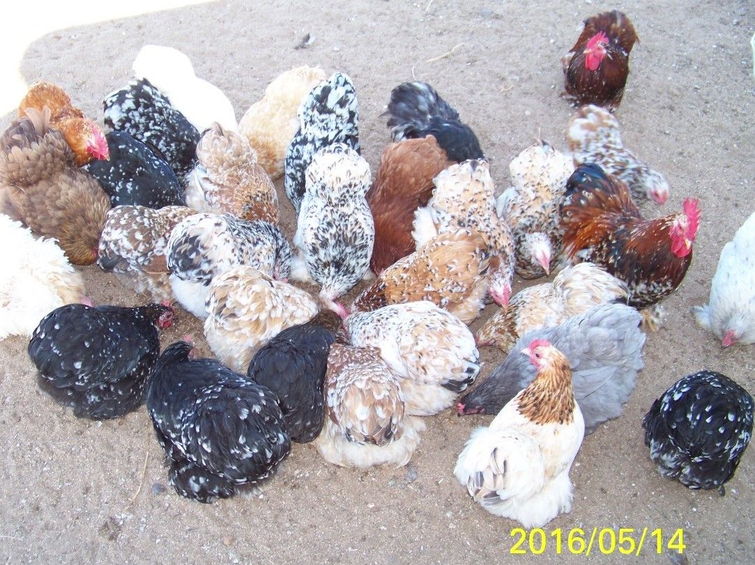 This is my flock, I pick them for the colors and personality, they're not all Cochins though. There is only one Cochin in the pic. I have 13 4 week old Cochin bantams. And two Cochin bantam hens, a white and a mottled.