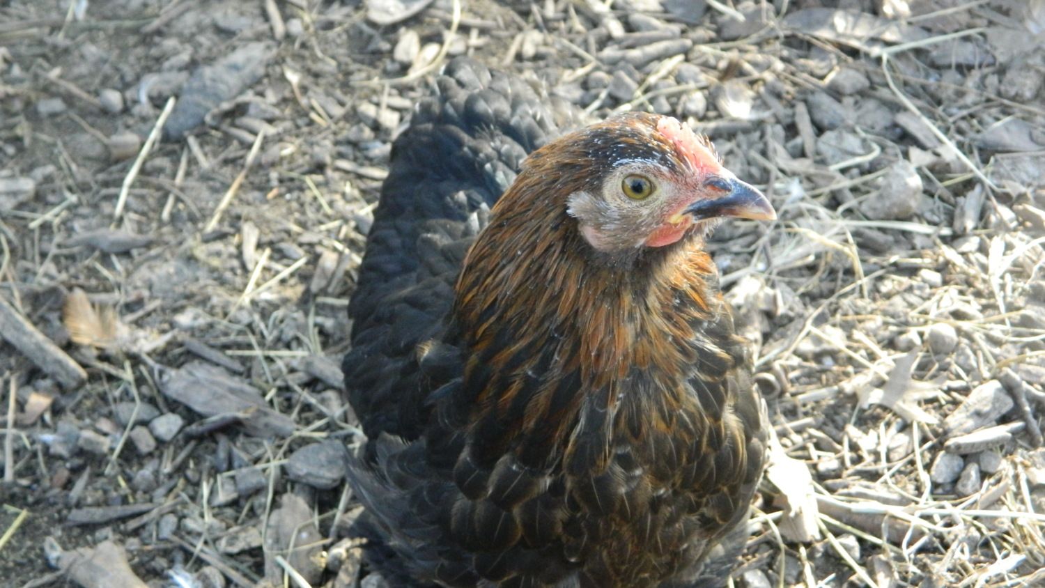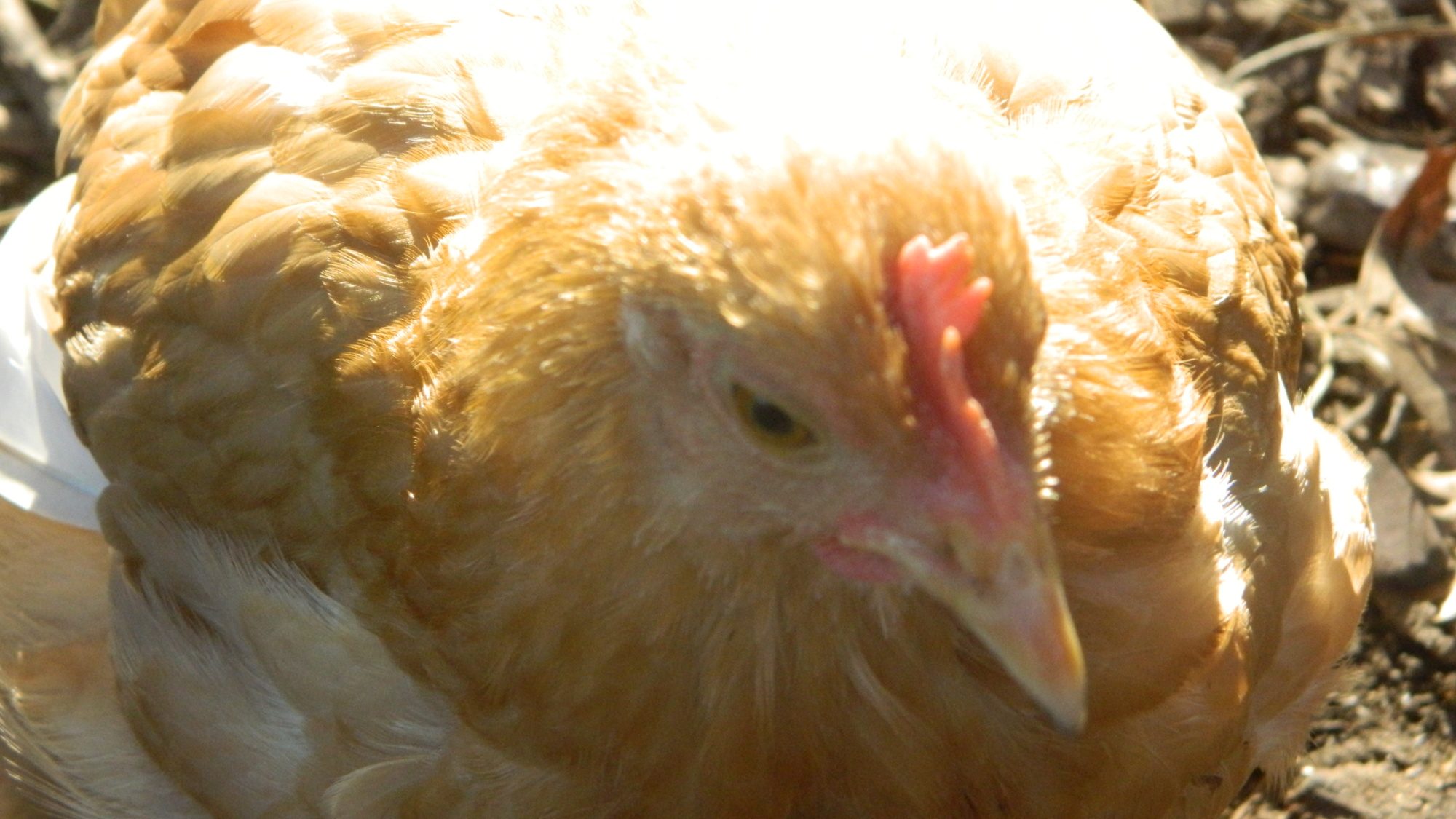 The pullets are begging to get tiny combs and waddles, that are turning a nice red, not very dark though. The Buff one is also very red in the face, it could be because she seems and acts the most dominant (She already is determining her place with the older hens, but our cockerel and the smaller pullet are too.).Of course this is the age where their body is kind of confused.