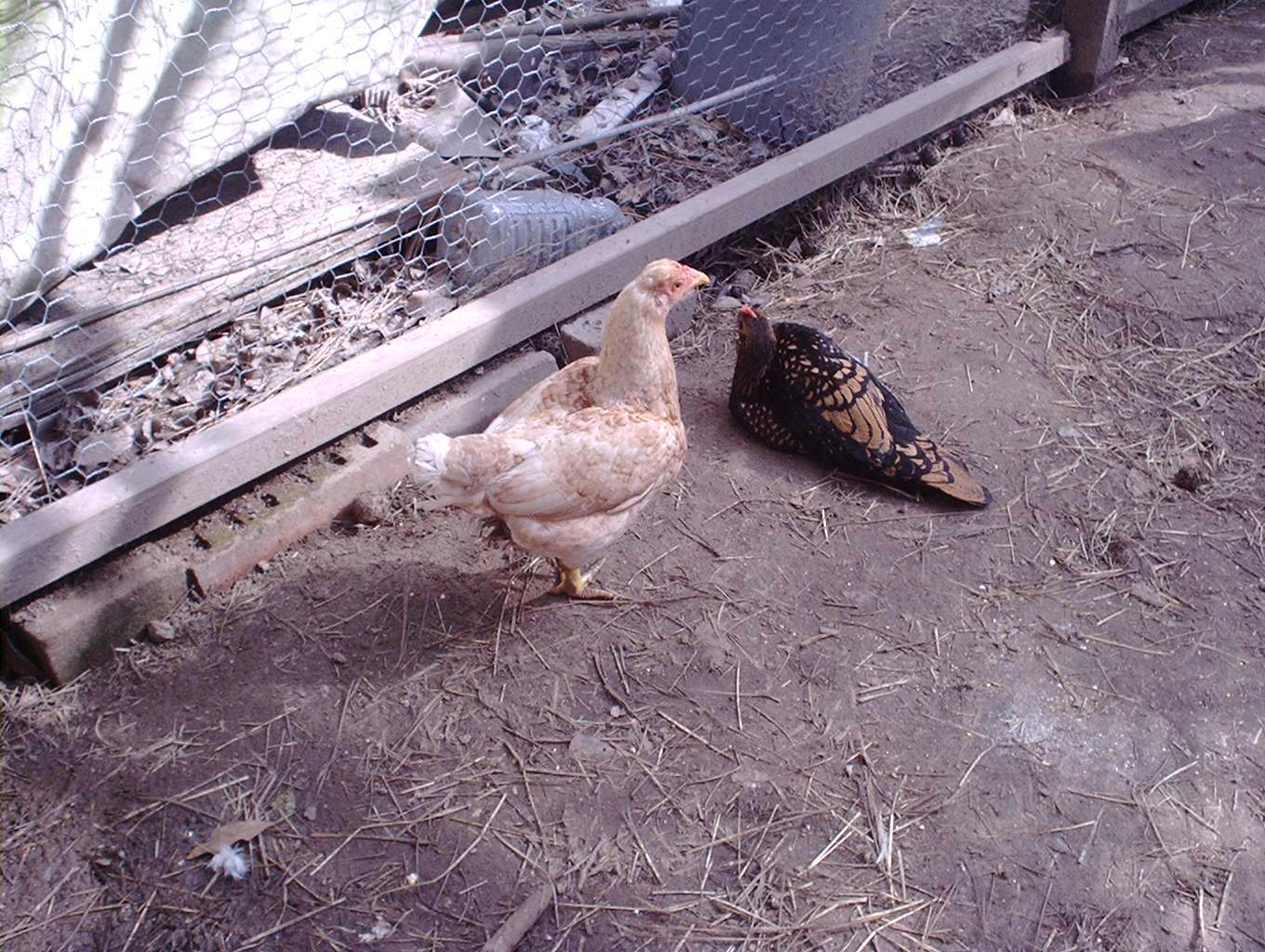Biff my dark Cornish roo. Not sure if it was frost bite or what but he lost a couple toe nails first. The a couple toes turned black. He was limping around so i was forced to amputate two toes. That was back in Feb and here it is June. The little guy is fine and strutting his stuff.
