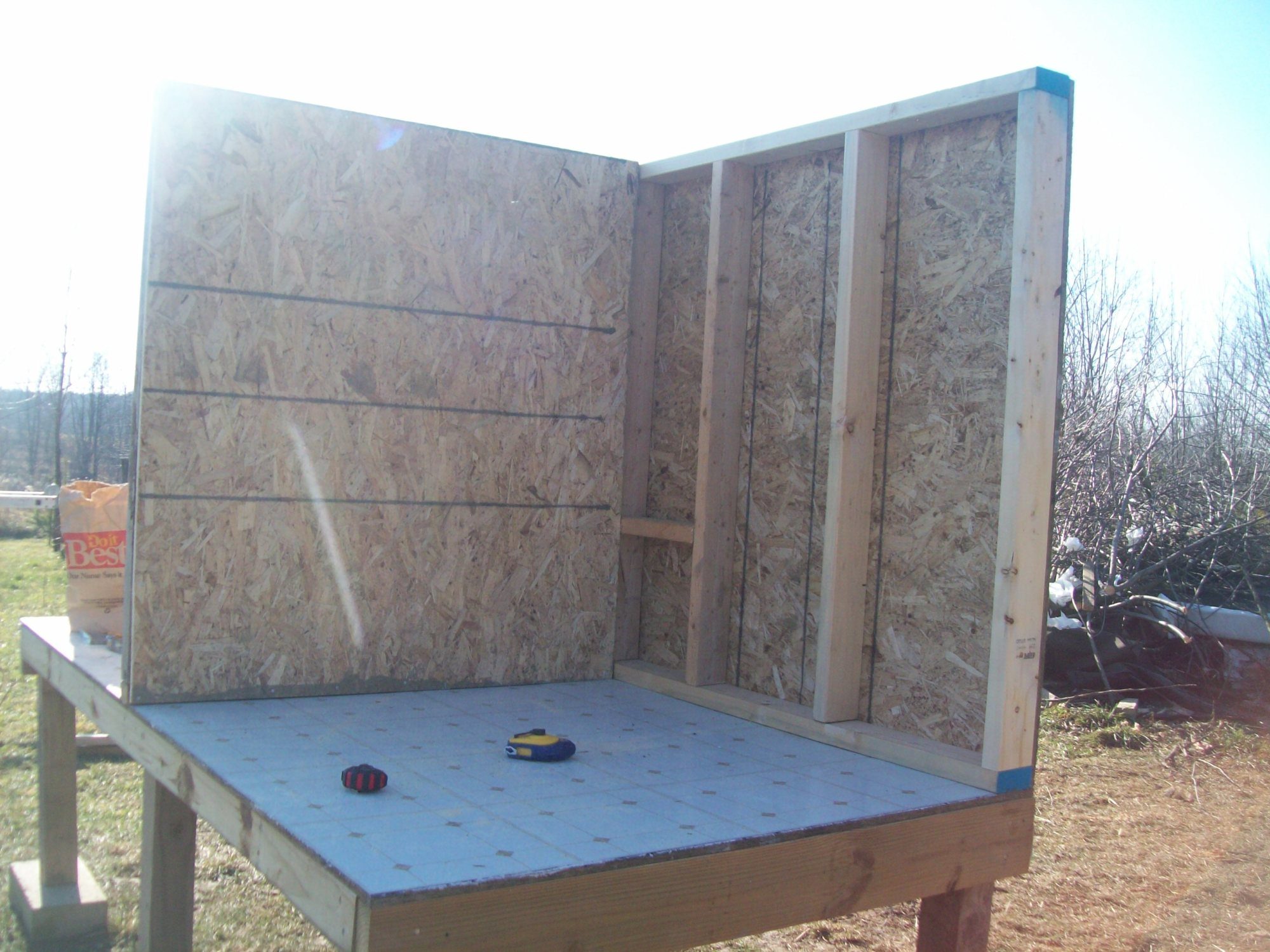 one sheet of 4x8 half inch osb for the floor