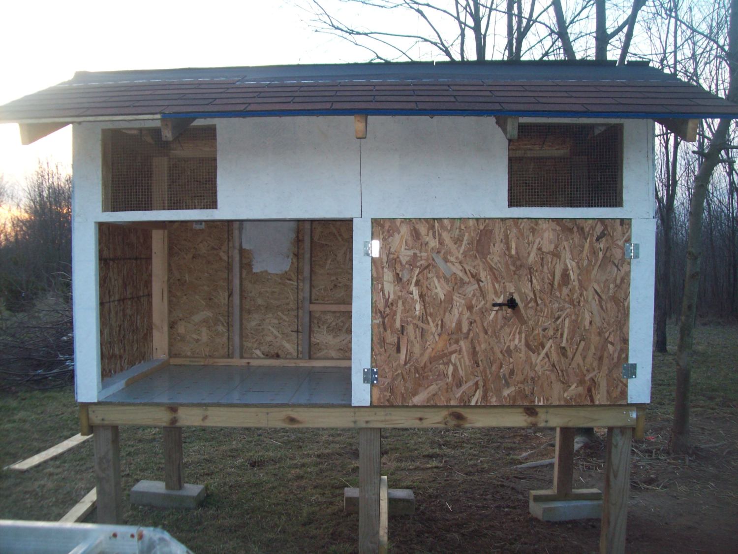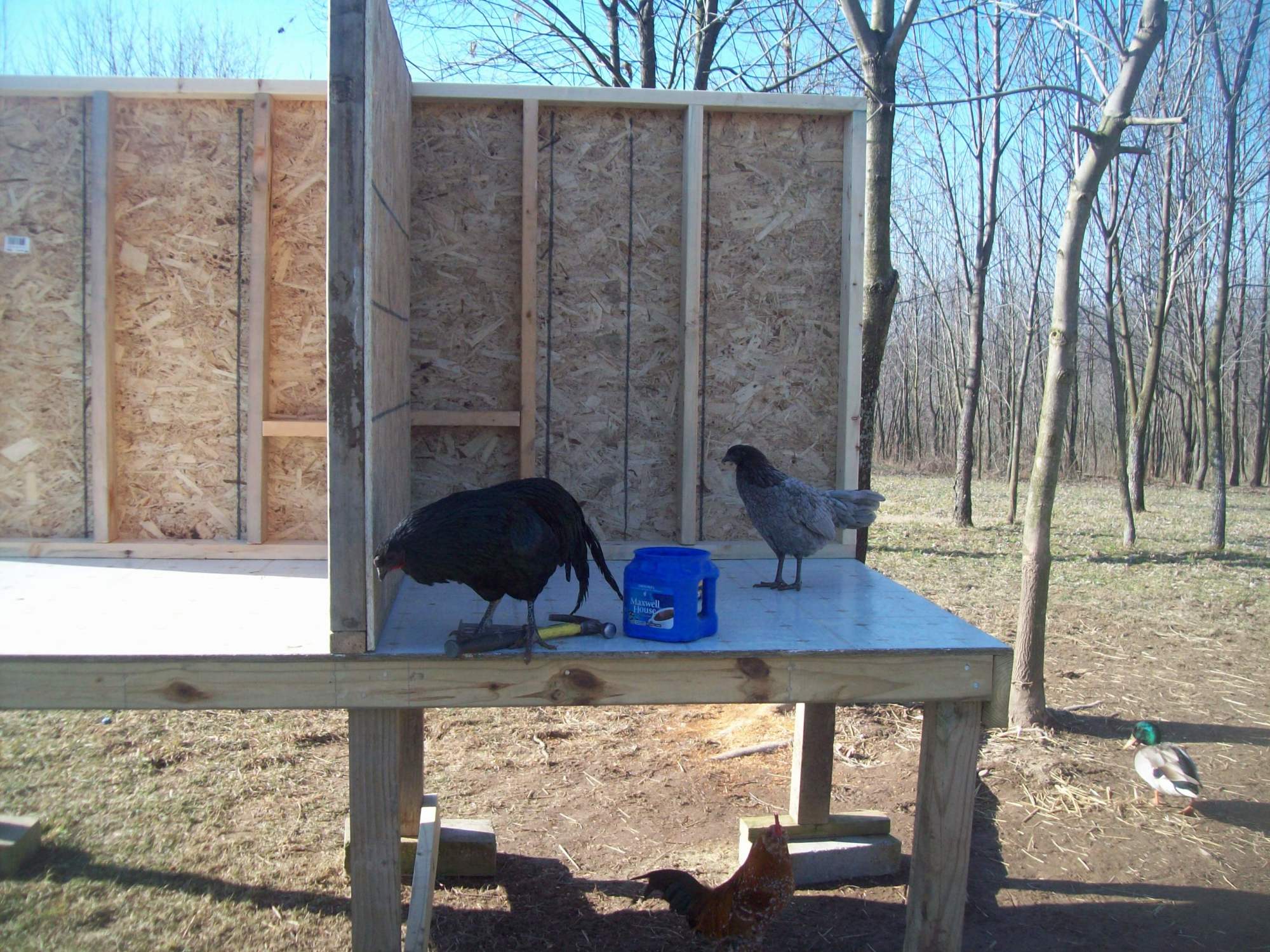 cut down trees that were in the way and low branches that might have been knocked down into the coops from high winds, storms, etc.