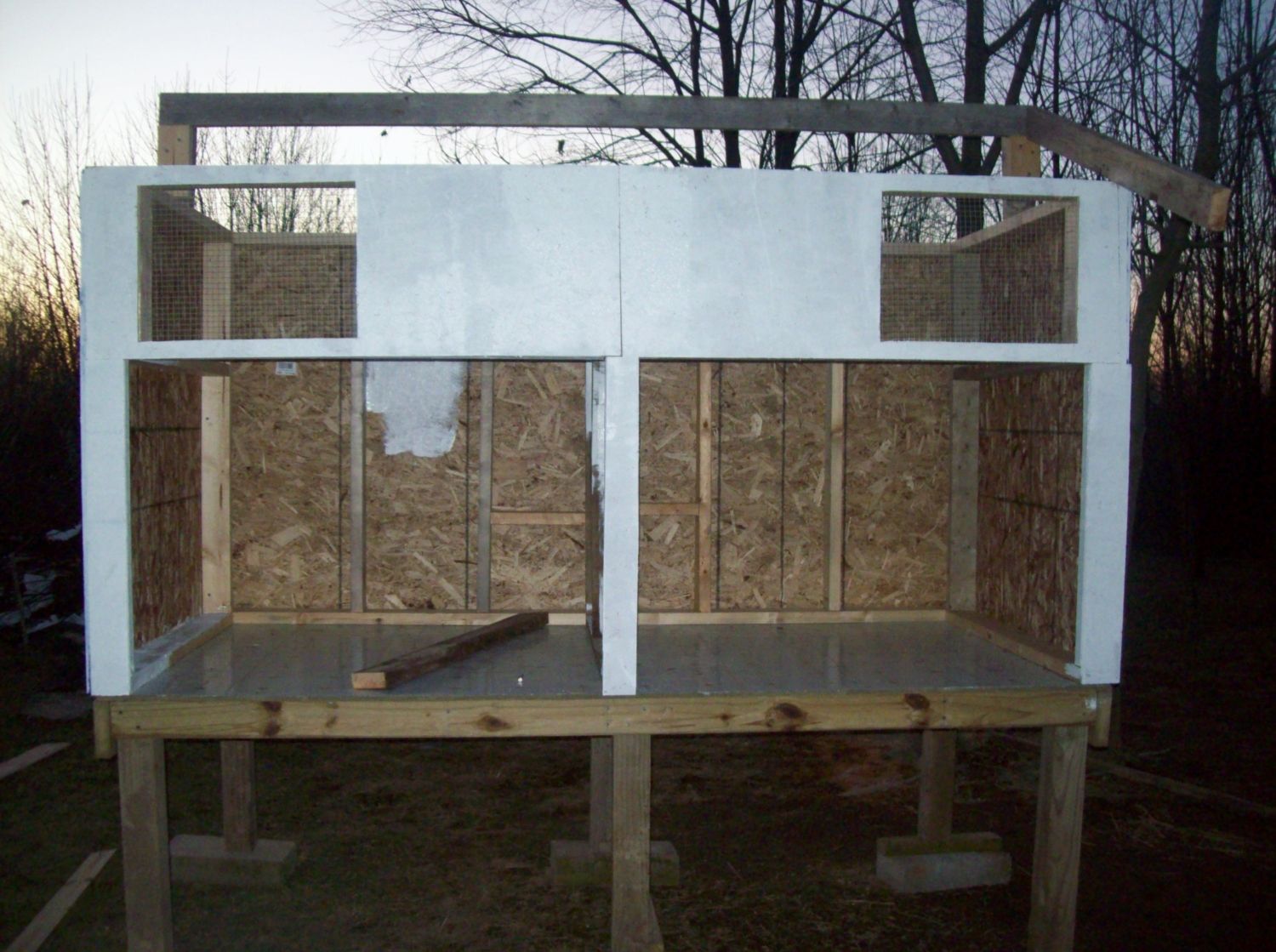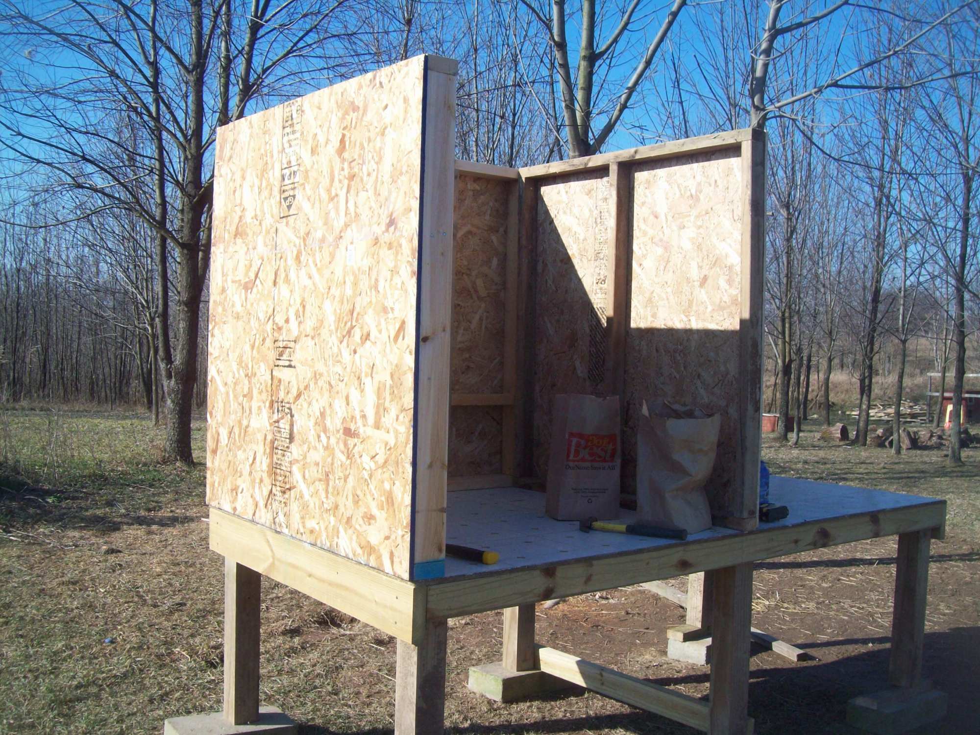 and we got the back wall framed in, osb nailed on, and braced up. This is where we stopped for today, plan to work on it more tomorrow and hopefully have it ready for painting on Tuesday.