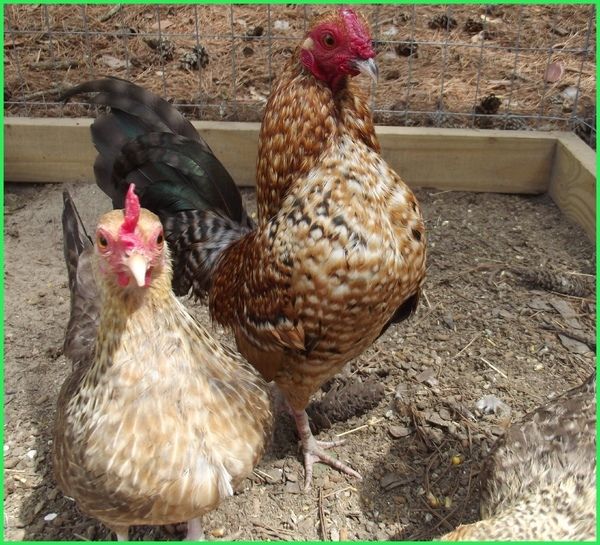 Yes they can eat chicken feed and the eggs are usually a dark tan with dark brown speckles on them.Thanks for all the info! Few quick questions..do they eat chicken feed and what color are there eggs? Thanks again!!!