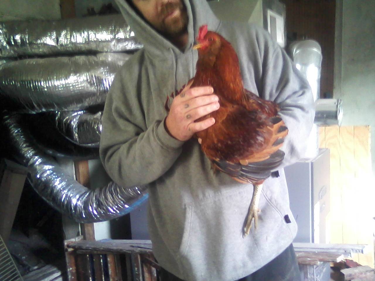 Some of his hens with him: