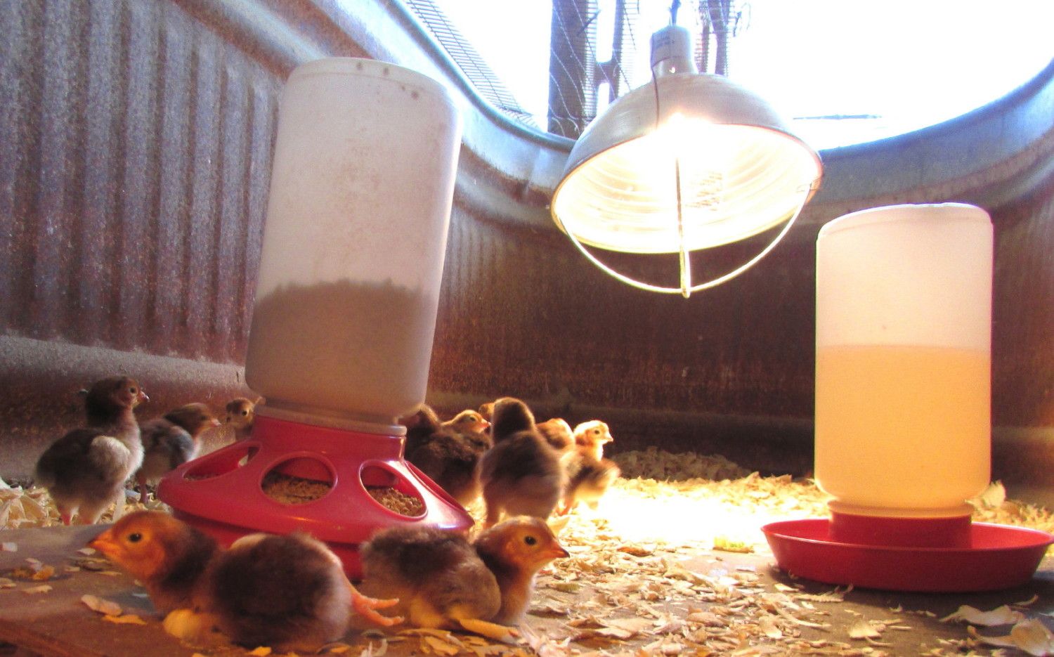 Received my order of 15 new chicks from 'Cackle Hatchery' yesterday, Friday 17th, 2015, at 6:50am at the Post Office. There were 17 healthy looking chicks in the box. The Brooder was warm and ready, with fresh water mixed with a tad of black strap molasses. Each chick got their beaks wet with their first drink, before releasing them into the brooder. They are eating well, but I did find a Pasty Butt this morning, and cleaned that up quickly. I use an old water trough for my brooder under the barn shed.