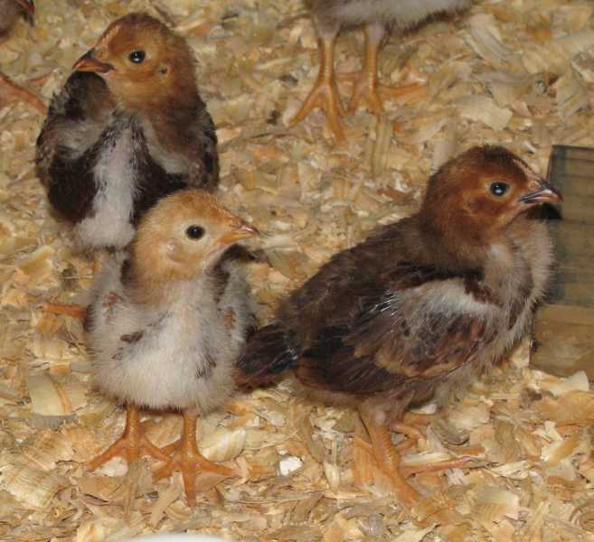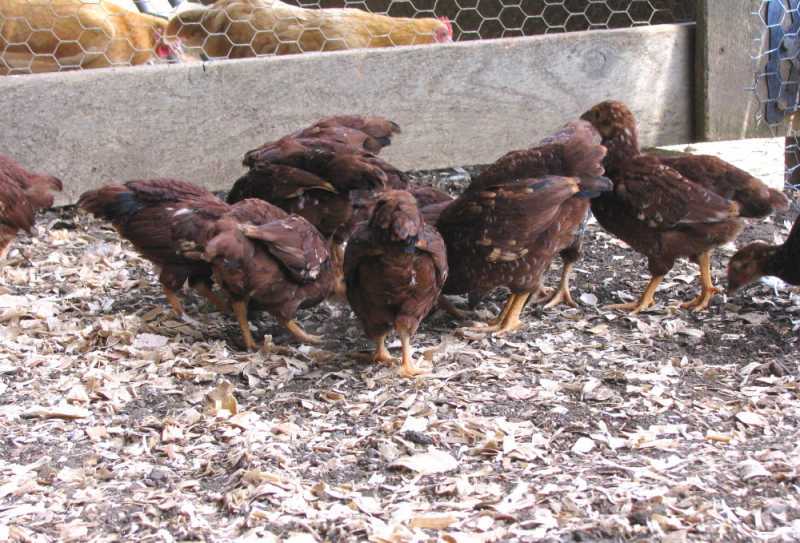 Here are a few of the gang at 2 1/2 weeks old. The cockerels are beginning to turn dark red down the sides of their breasts. The LiL golden head in front is hopefully a Pullet.
