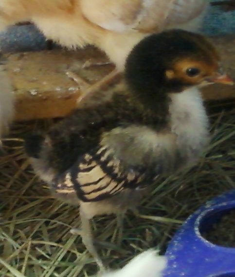 He looks just like one of the little ones we had. Ours also was a roo and we was hoping for a hen. Mine was about 3 1/2 months old when I turned him out with the other chickens and a big black snake ate him. He was my kids favorite also. The pics you have of him are wonderful. Your little girl is beautiful also.