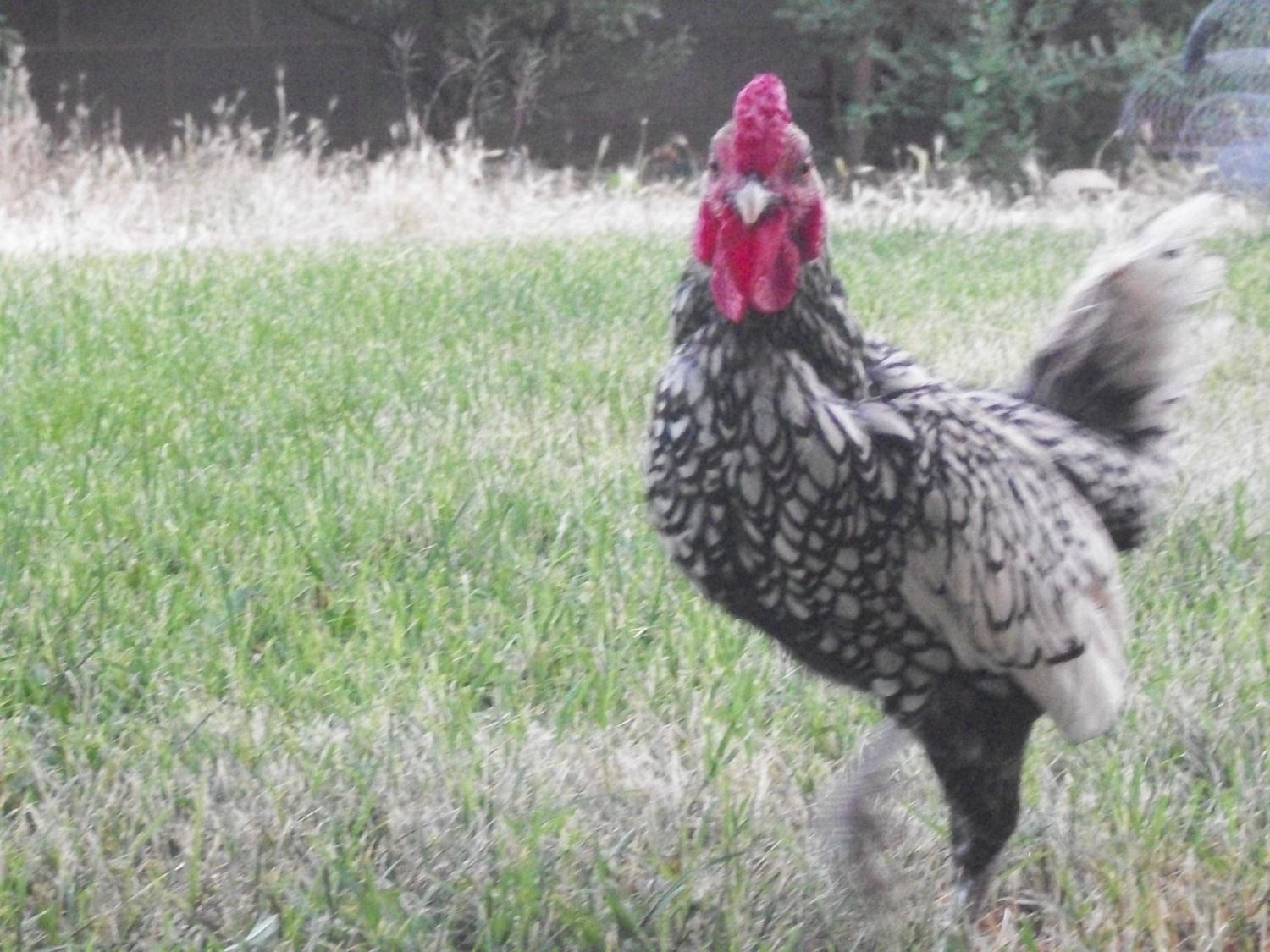 This is Henry, as my Grandpa so aply named him. He is a Btm White Frizzle Cochin, 10 months old, and is one of the first birds I raised after not having chickens for about 6 years. This bird is a hoot! He will "talk" to you, loves to be carried and packed around, will follow me anywhere I go, and he isnt that bad to look at either. Lol. To be honest though, all my birds are spoiled and will follow me (and just about anyone else) everywhere. They all have their own personalities, and its what helps makes this hobby so interesting, but Henry is just something special.