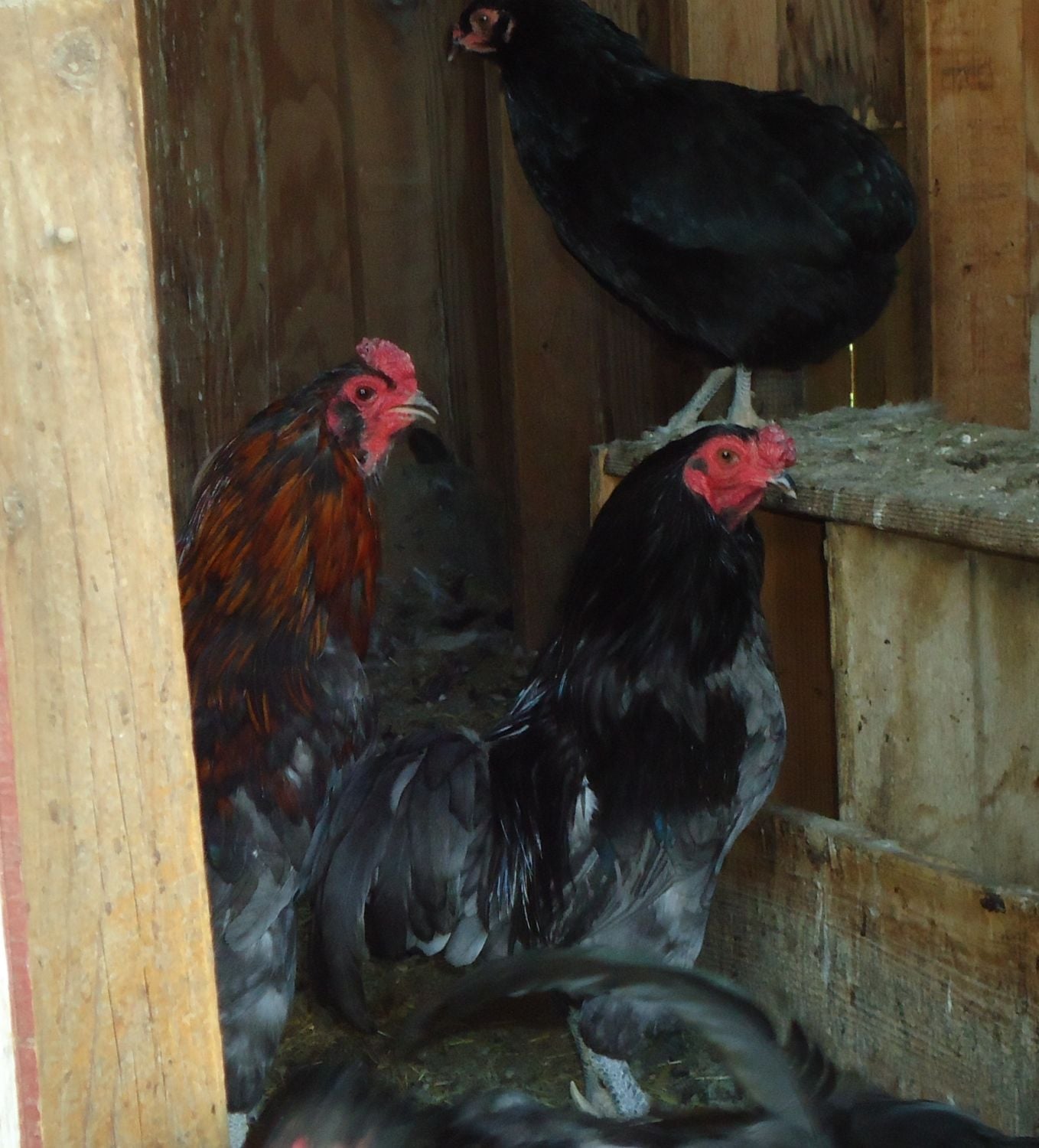 I have two blue tailed clean faced Araucana bantam roosters in need of a good home. One of the roos does have red mixed in with the blue almost like a blue wheaten. They both turned one year old this year (one of them turns a year old end of summer). They both carry the blue egg gene and the father is a rumples/tufted white araucana, mom is a black rumpless clean faced hen.