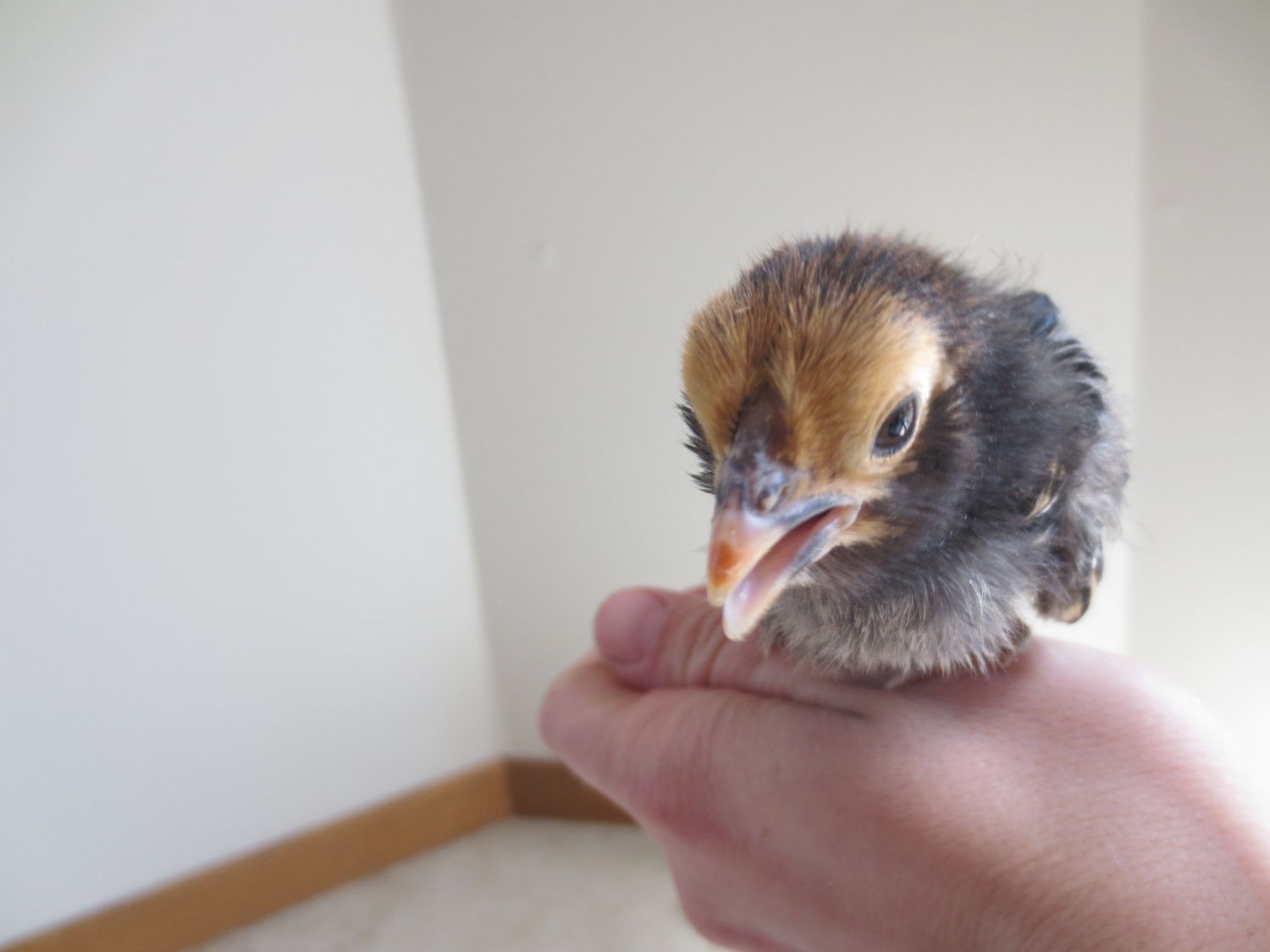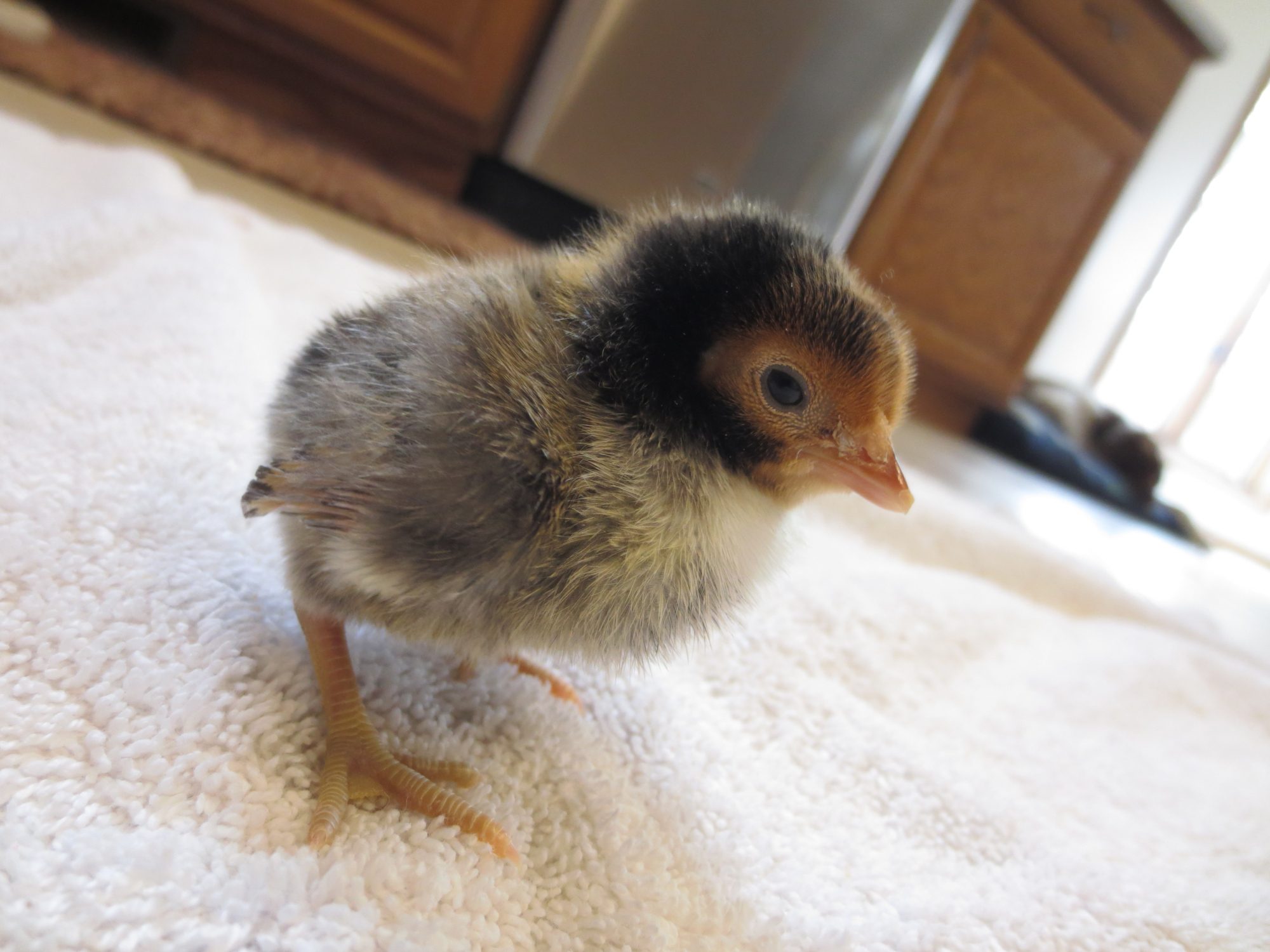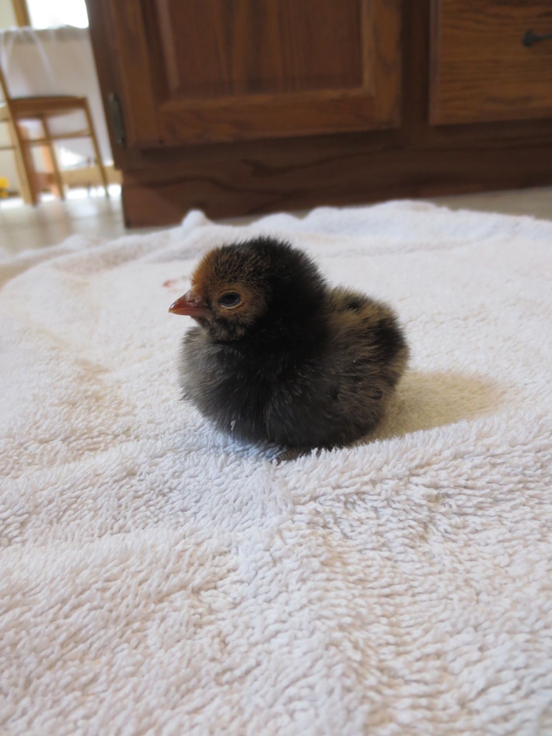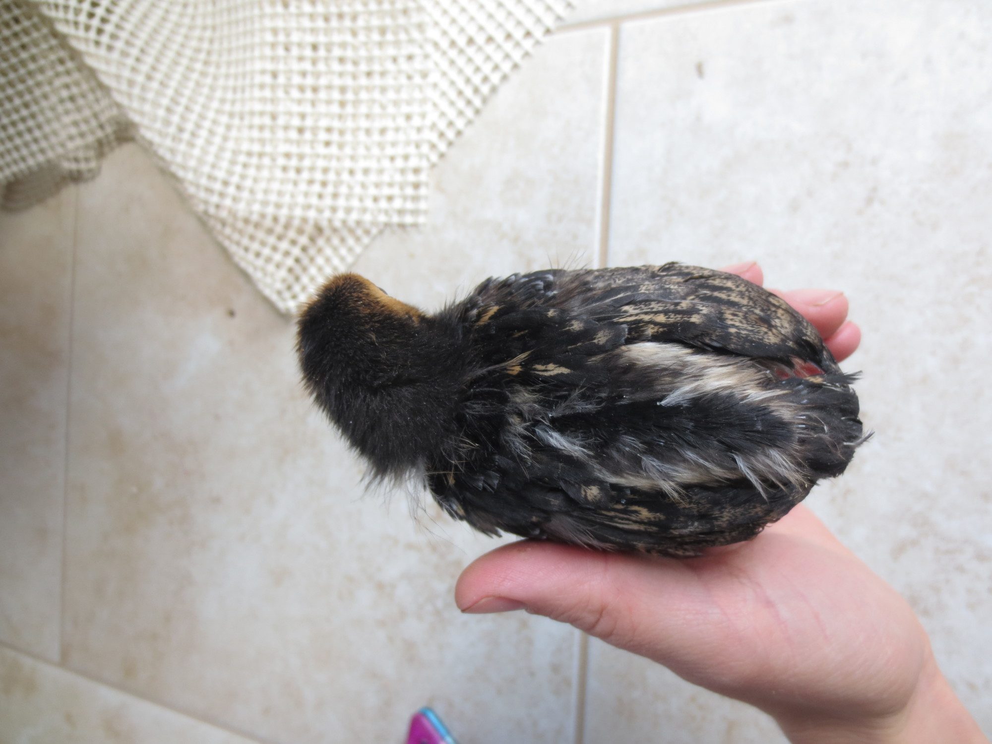 Old english game, thats what my son had last year, but she disappeared one afternoon. Probably due to hawk migration, it was the right time of year. It was the only causality we had. I'm just guessing since this is a little brown chipmunk colored chick. I didn't post a picture of that one. Theres only one of them that has a muff, do all EE bantams have muffs? Because the other 4 unknowns don't have muffs. I'll try to get pics of them all up in a week or so and maybe that will help.