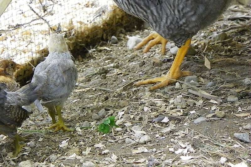 I don't remember taking this picture, but it illustrates how intimidated a bantam hen might be!