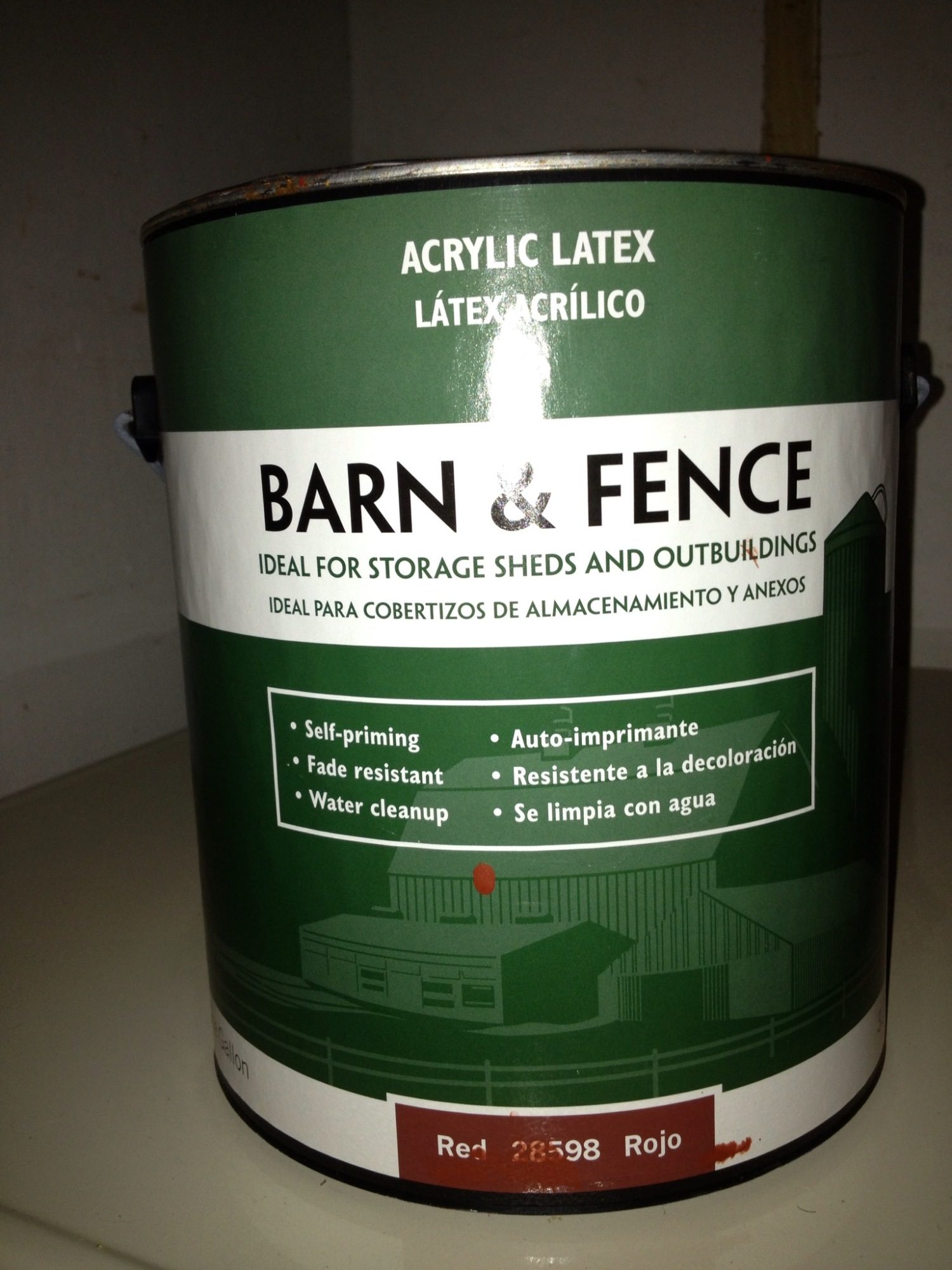 I got a gallon of barn and fence paint which was barn red for 15 bucks at Lowes. I found it a bit thin, but 2 coats worked well.