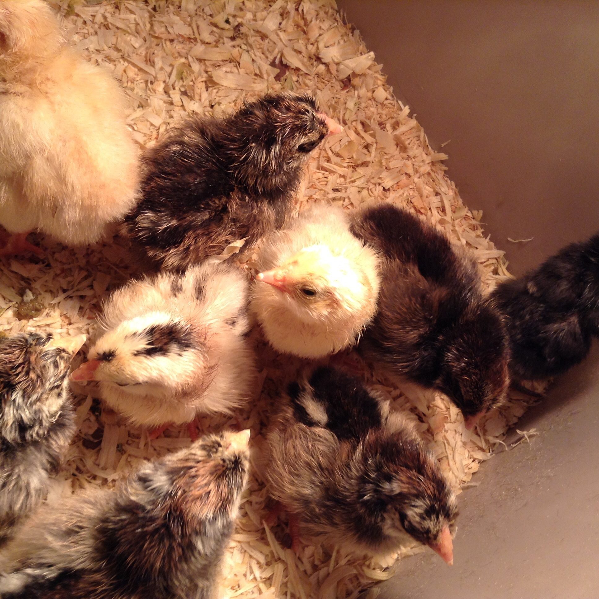 The mothers were Easter Eggers, a Sumatra, and either a Wyandotte or a sexlink.