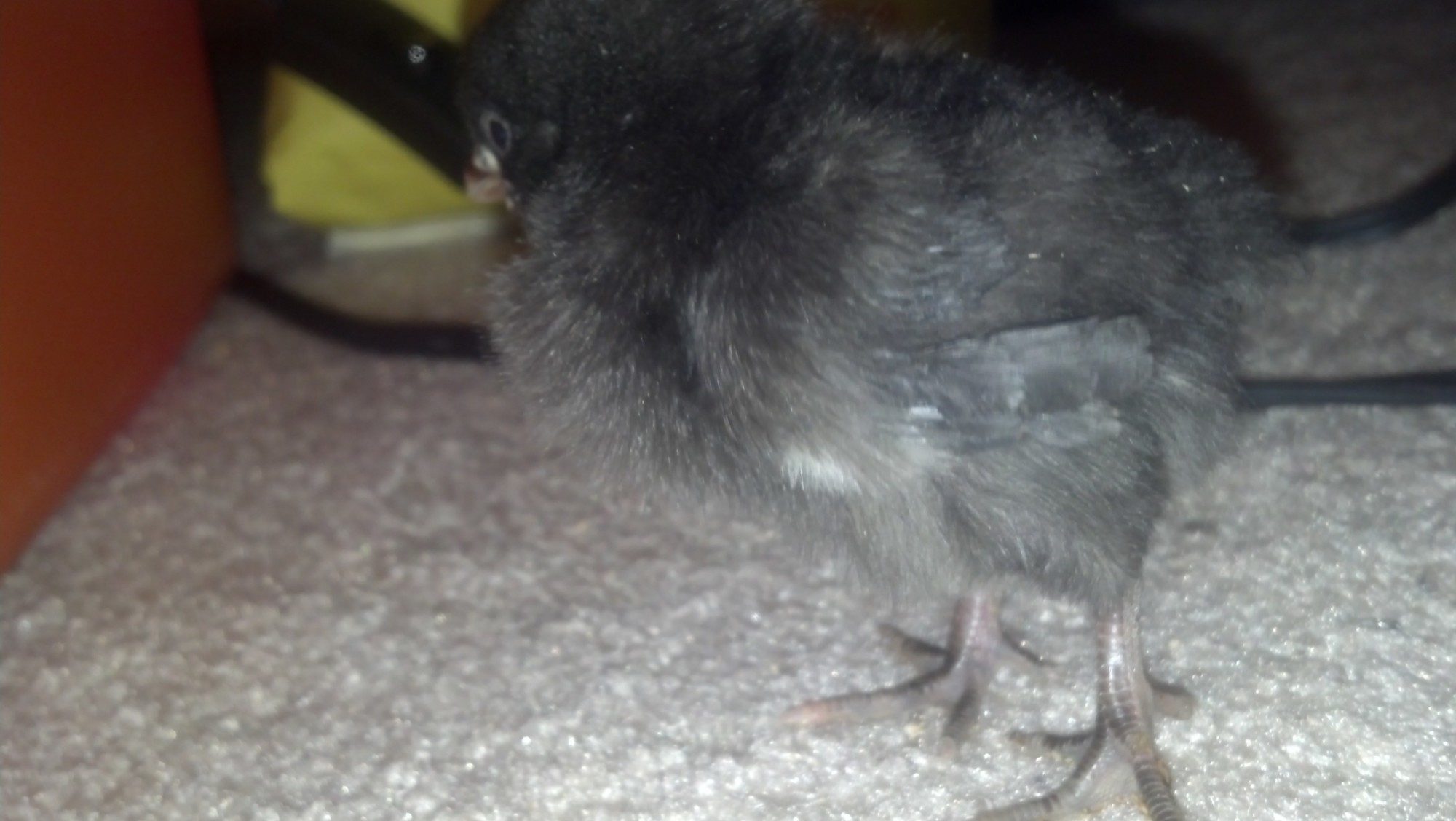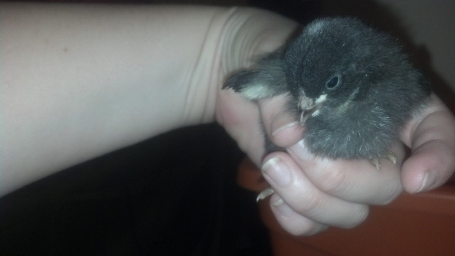 Chicken math caught up to us again... We went from 46 chicks to 54! LOL... There is one I cant quite my finger on what it could be.. It is definately a bantam. clean legged. definate "stripes" in the feathers, black, white, and now back to black I have two sets of pictures from the day I got him, and then his 2 week update.