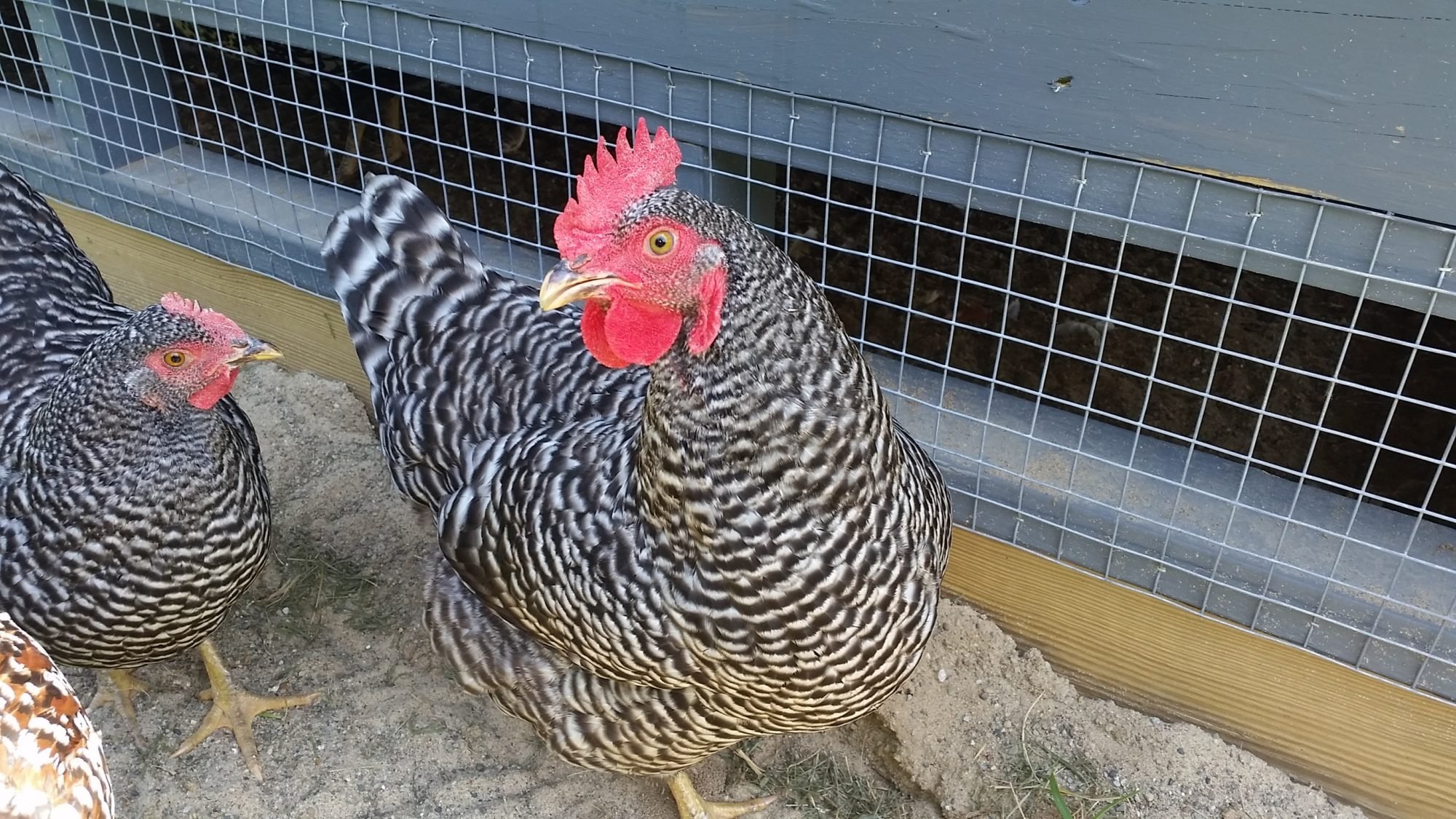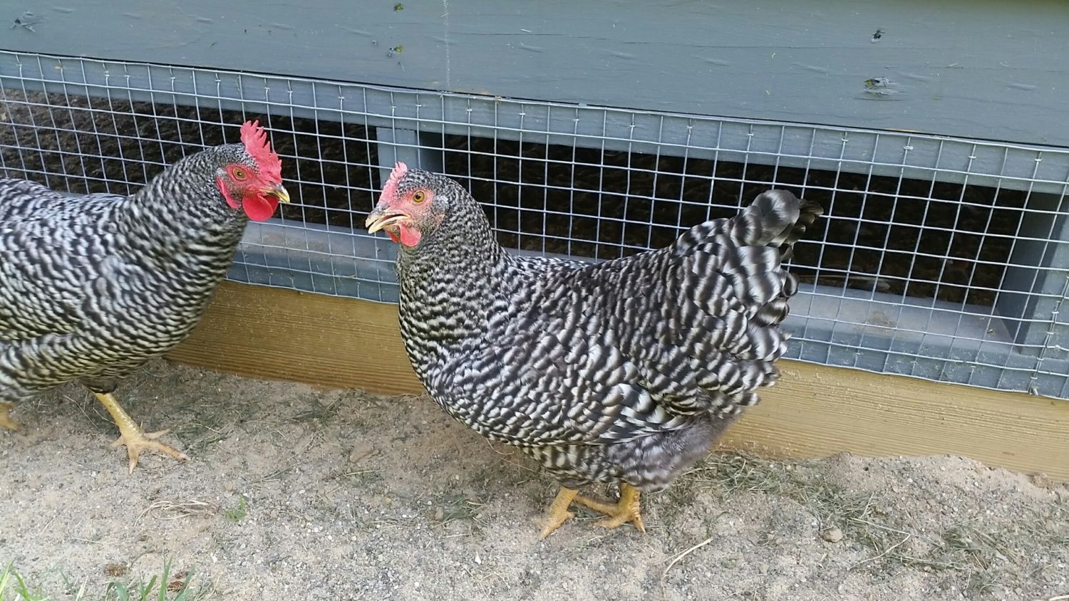 These two barred rocks are exactly the same age, approximately 22 weeks old. Notice the difference in the size of the combs and waddles. Is the one on the left a roo and the right a hen? They were both purchased from the same hatchery and were suppose to be hens.