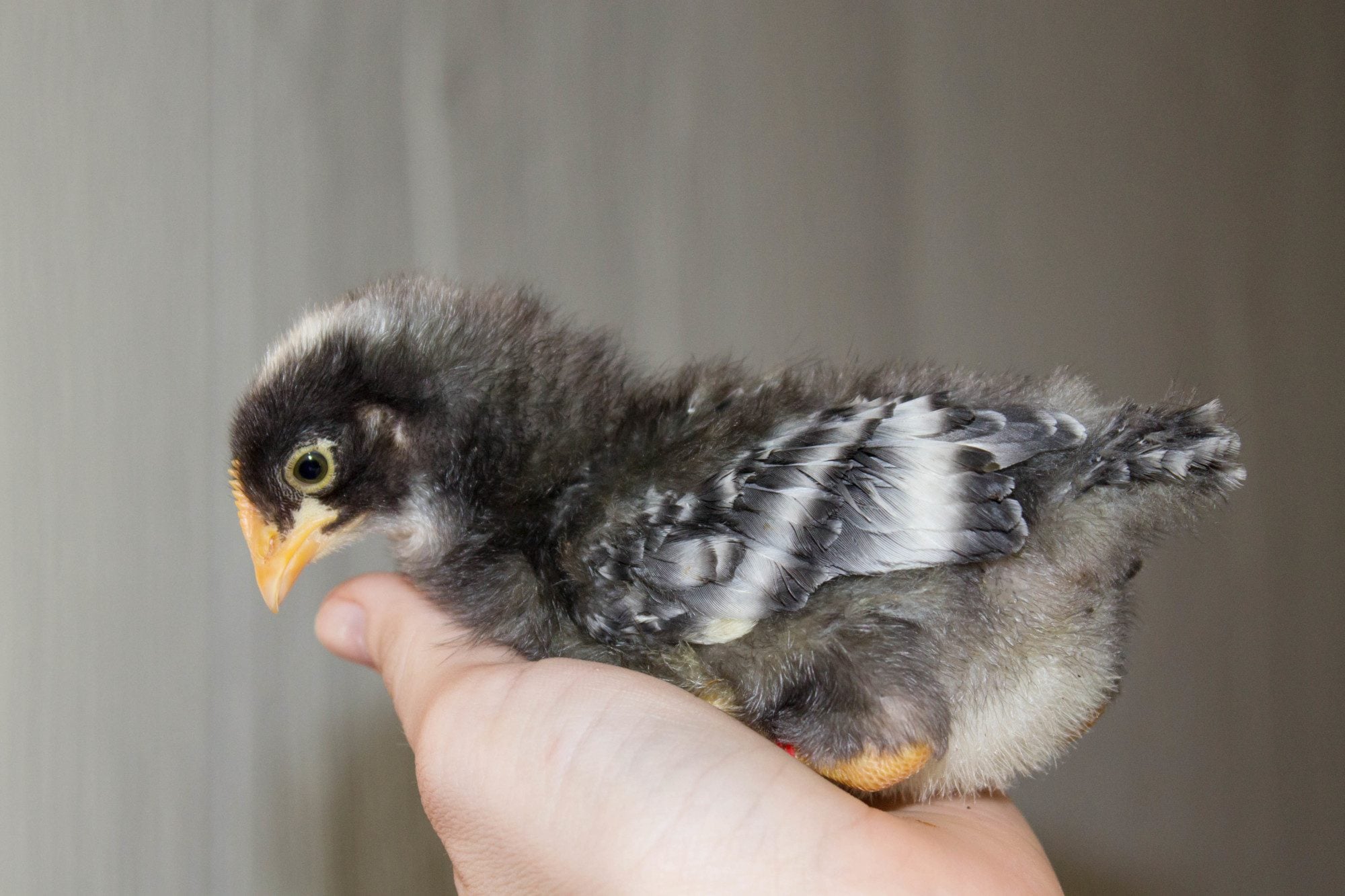 They weren't even born around the time the BR babies were. Chipper was born at 11:25am and the closest BR baby that was born was at 4:20pm- and it was easy to keep their looks apart since my BR baby had a half black beak and dusty black legs while Chipper had orange feet and a little bit of black with an orange tip on her beak. I was very thorough with keeping them identified.