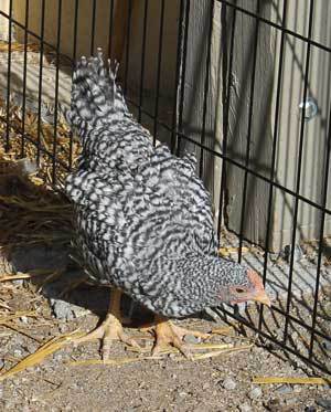 This year for the first time I have a BR I just can't tell if it is going to be a roo or not. It is just whiter than everything else. It is 7 weeks old. It had a tough start in that it lost sight in one eye due to some chicken pecking at 4 days. There was a period after that before it learned to adjust that it was almost not thriving and I thought about putting it down. Then it figured it all out and life was fine, though it is still on the smallish size,but quickly catching up.