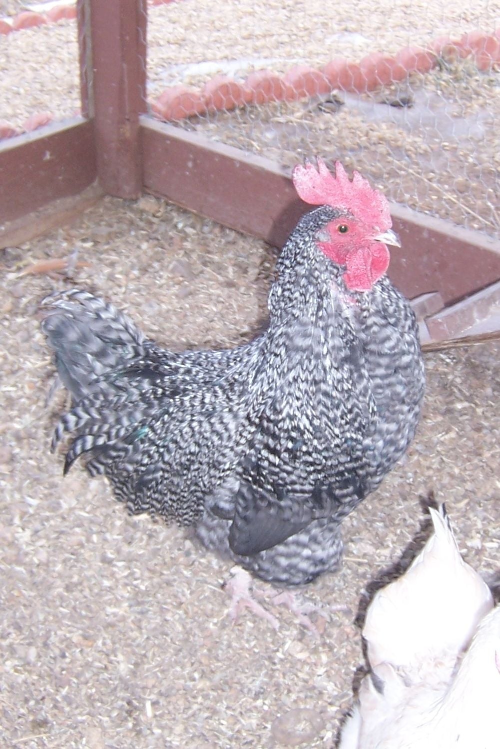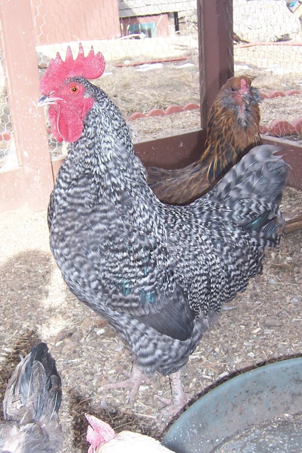 Lastly, we have a hen that we know for sure the father was a barred rock, can you tell what the mother is just by looking at her, or is it too variable? Here she is: