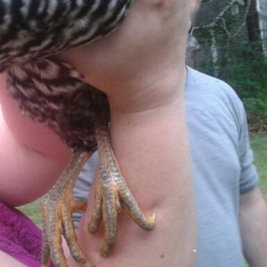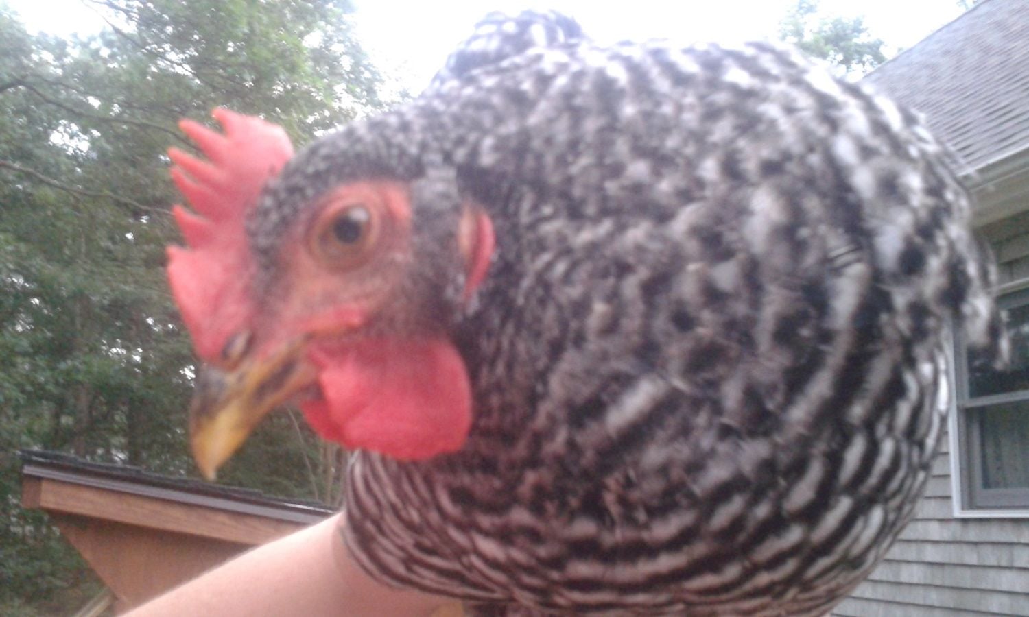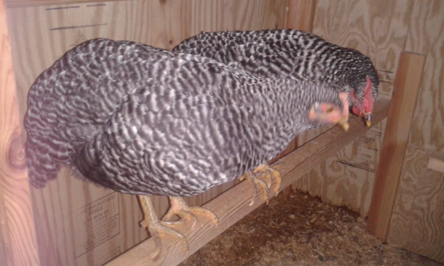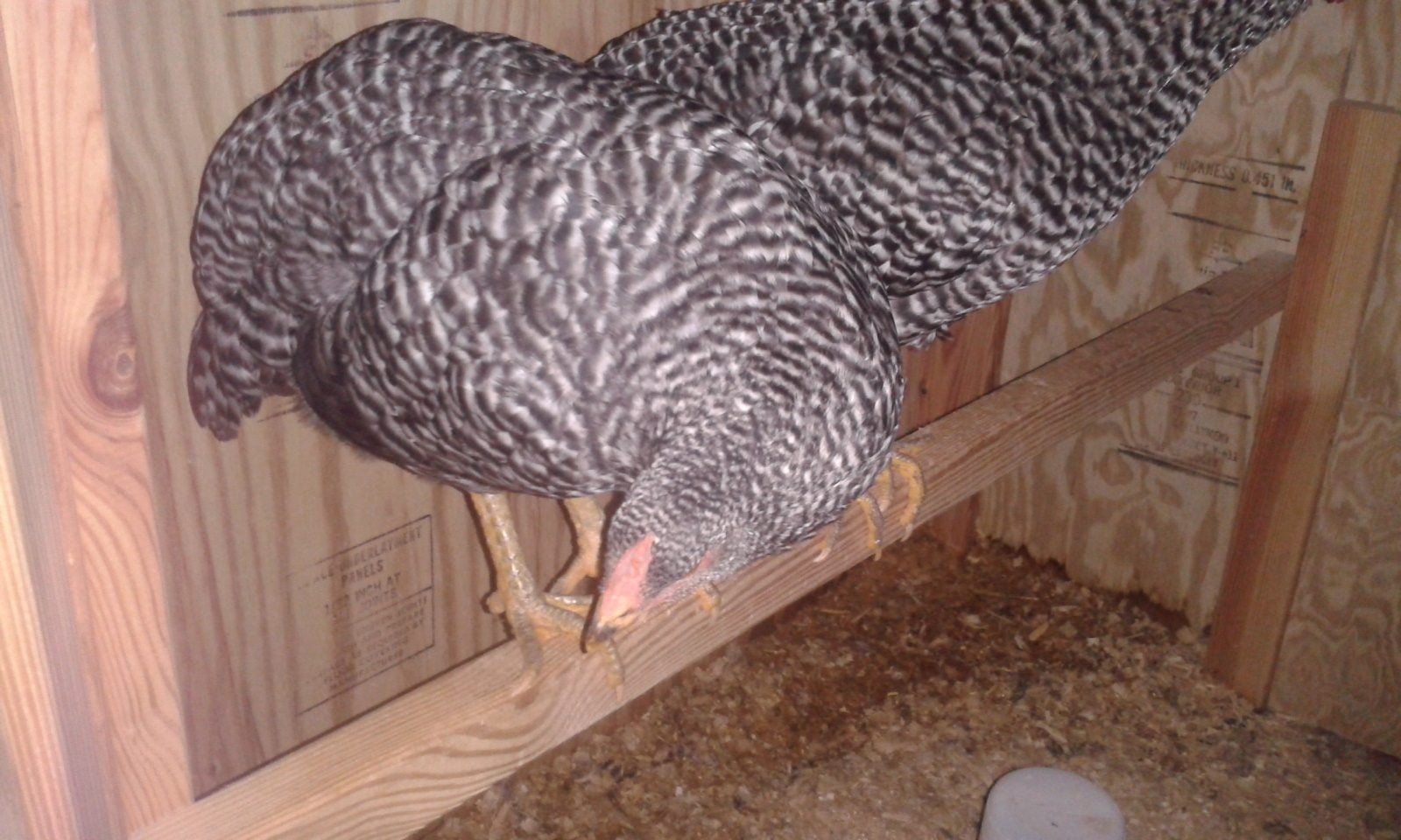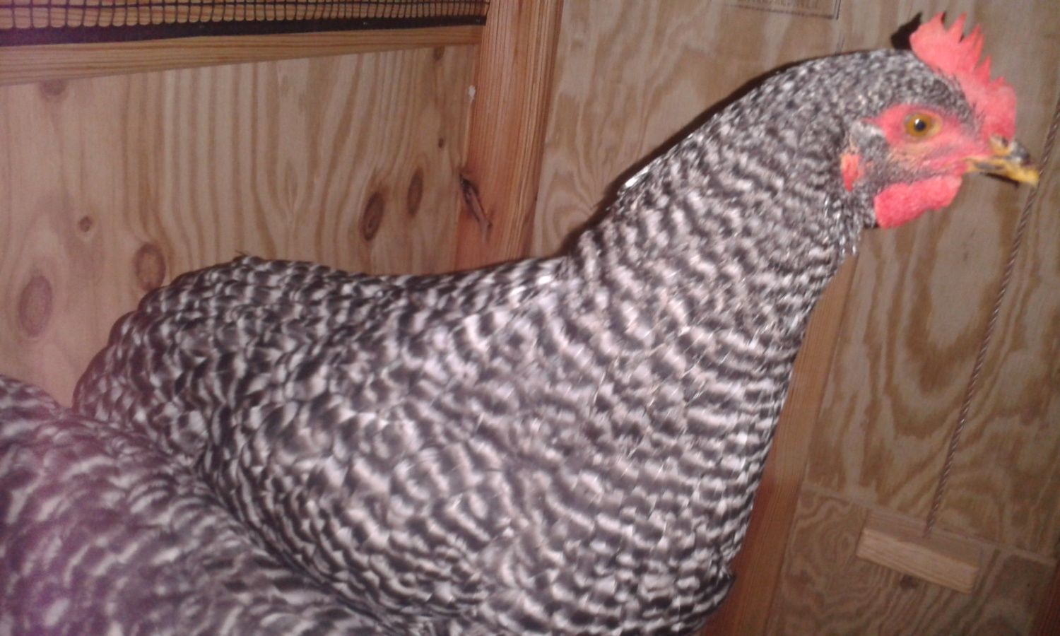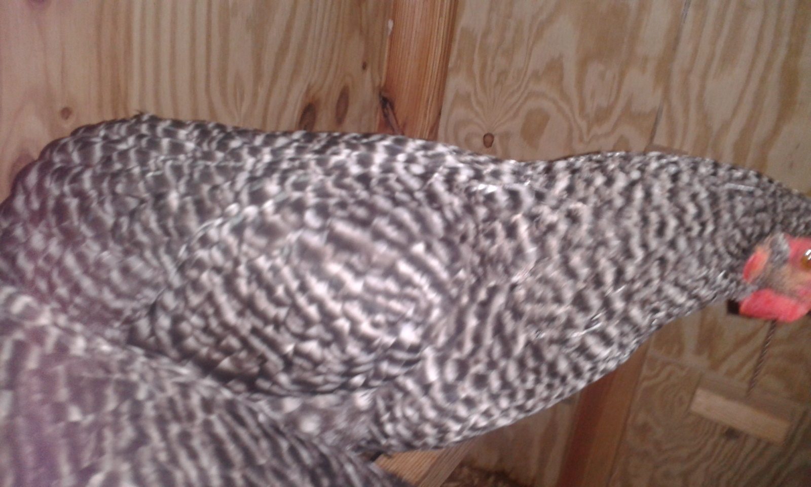 Thats his/her face and some of the barring pattern. The other barred rock has a smaller and less red comb and is smaller.