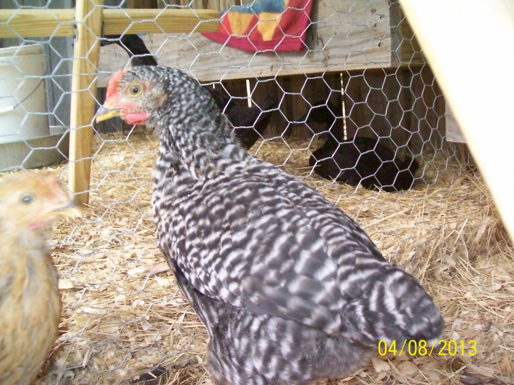 I am curious about that too. I have kept 3 of the chicks I hatched and these three all look different from one another. One of them looks like the father (barred rock) and the others totally different from a Barred Rock or a Rhode Island/Production Red. In fact one of them turned out looking like one of my Easter Eggers. I know I didn't put any greenish-blue eggs in the incubator. I will post a better picture later today but this one is off my phone and from a week and a half ago. They are almost 2 months old as of now.thanks for info. i am not really concerned about the sex of the chicks as much as i am curious as to why some of the chicks are black with barring and the rest are turning all white. I just thought that was interesting to hatch two completely different colored chicks from same parents. 3 are barred and 6 are white.