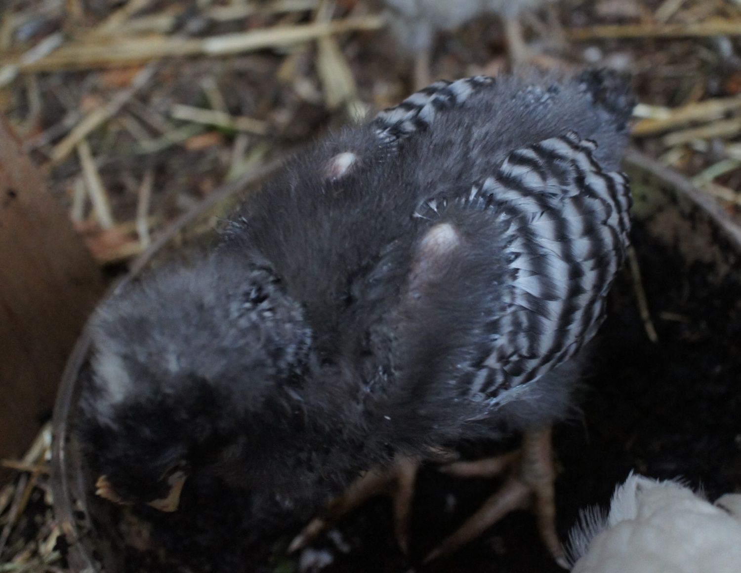 Here is our cockerel Vas'ka at 4 weeks (he grew into a full size rooster, LOL). He was noticeably heavier compared to the girls. No tail feathers at that age, and his neck feathered before the head did.