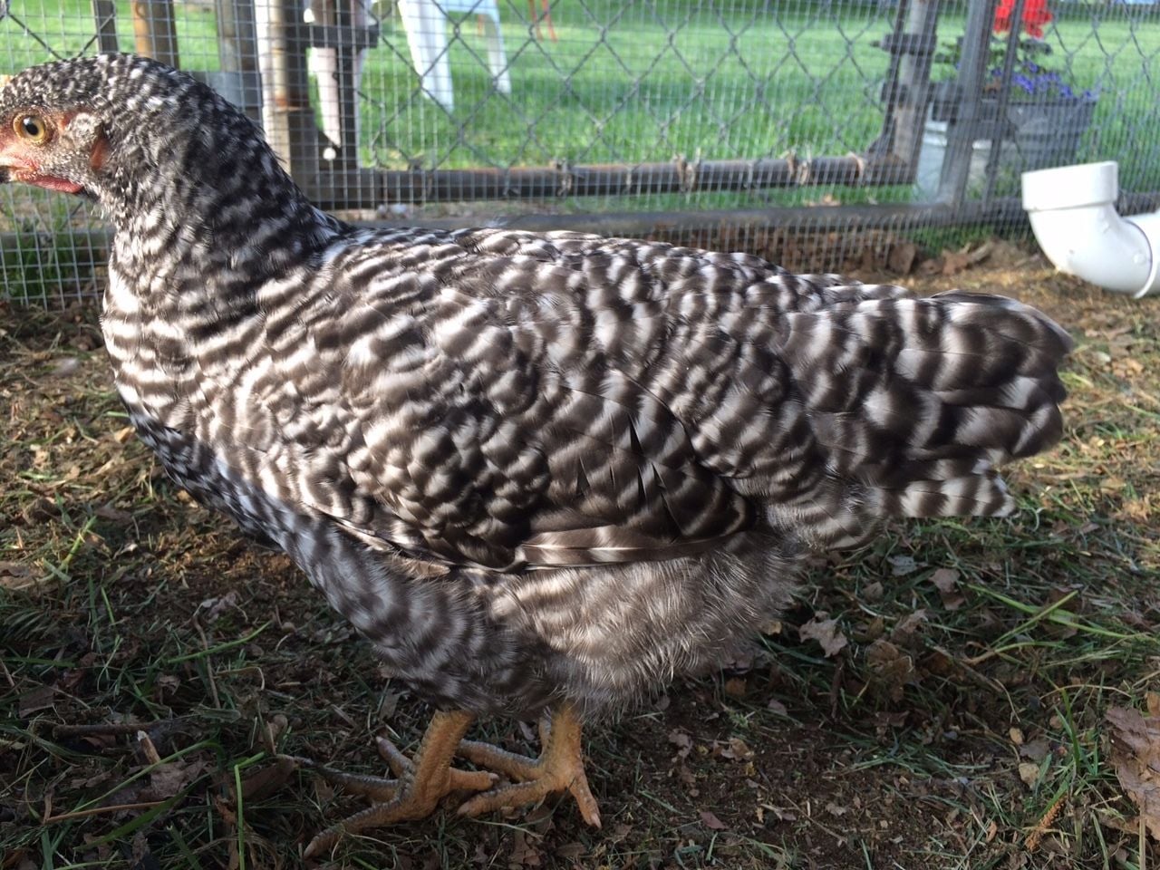 I'd say pullet. She isn't lighter "grey" looking boys have and I can't see pointy feathers either