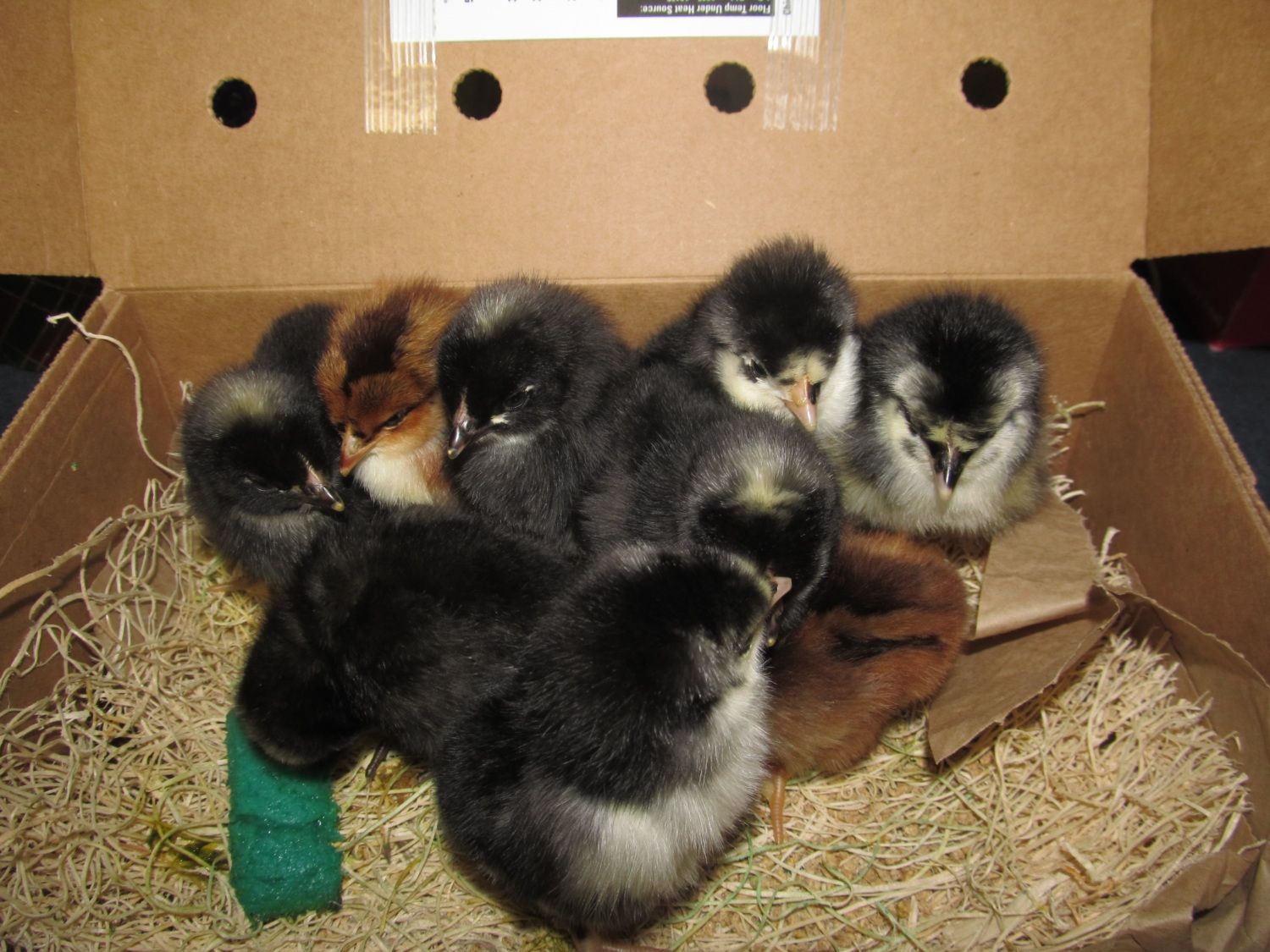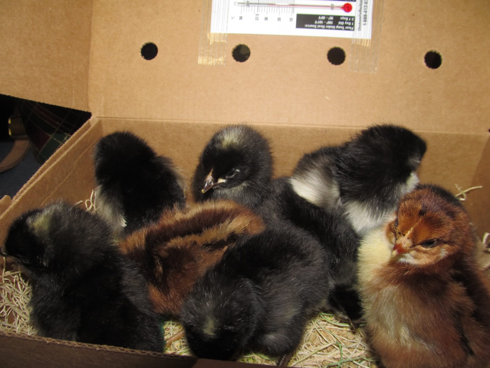 We has PEEPS! I am so EGGCITED! Three Australorps, three Barred Rocks and two Speckled Sussexes! I am so beyond excited! I have little peepers in my living room, chirping away softly!
