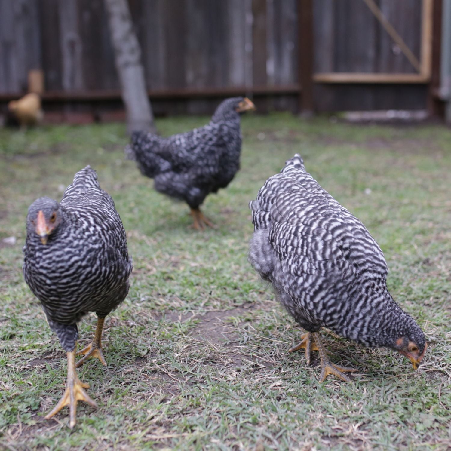 Hi everyone. Our barred rocks are about 10 weeks old now. We got them at a local feed store at the same time. They are huge chickens already! I assumed since I didn't see a large comb on any of them by now, they were all girls. But now I am unsure. Help?! None of them have the saddle or sickle feathers yet, but some combs are red, while others are yellow and some have more white in their feather pattern. This first picture is the group of them all together. Notice two are lighter and the one in back is darker: