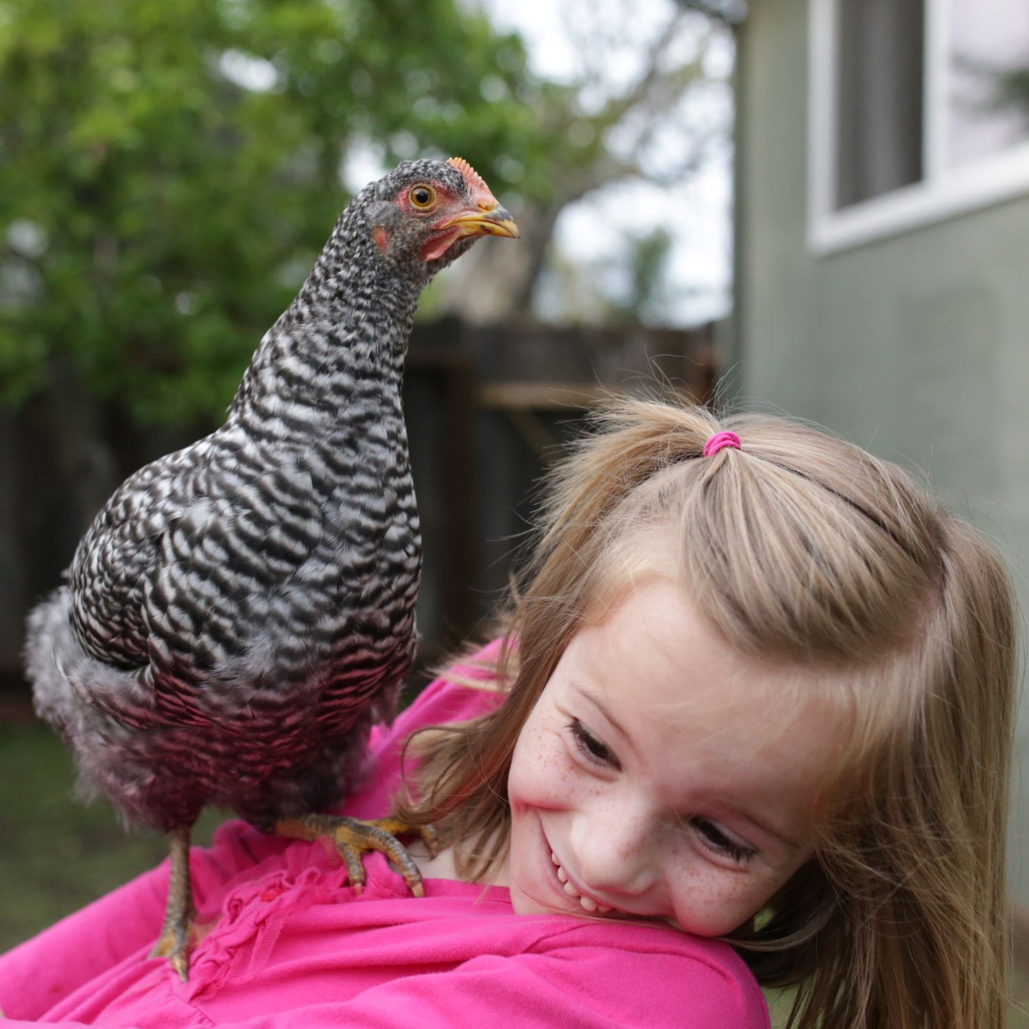 Chick 3 also has lighter coloring and a pink comb that is not very large. She has a personality more similar to chick 2 and doesn't like to be held. She seems to be second in command, after chick 2.