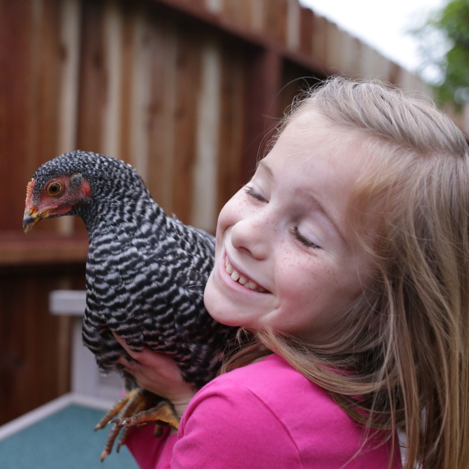 Chick 2. She has lighter coloring and has had a pink comb for a while now, but it's not much bigger then Chick 1's comb. She is also more aggressive and runs up to us/ acts bossy.