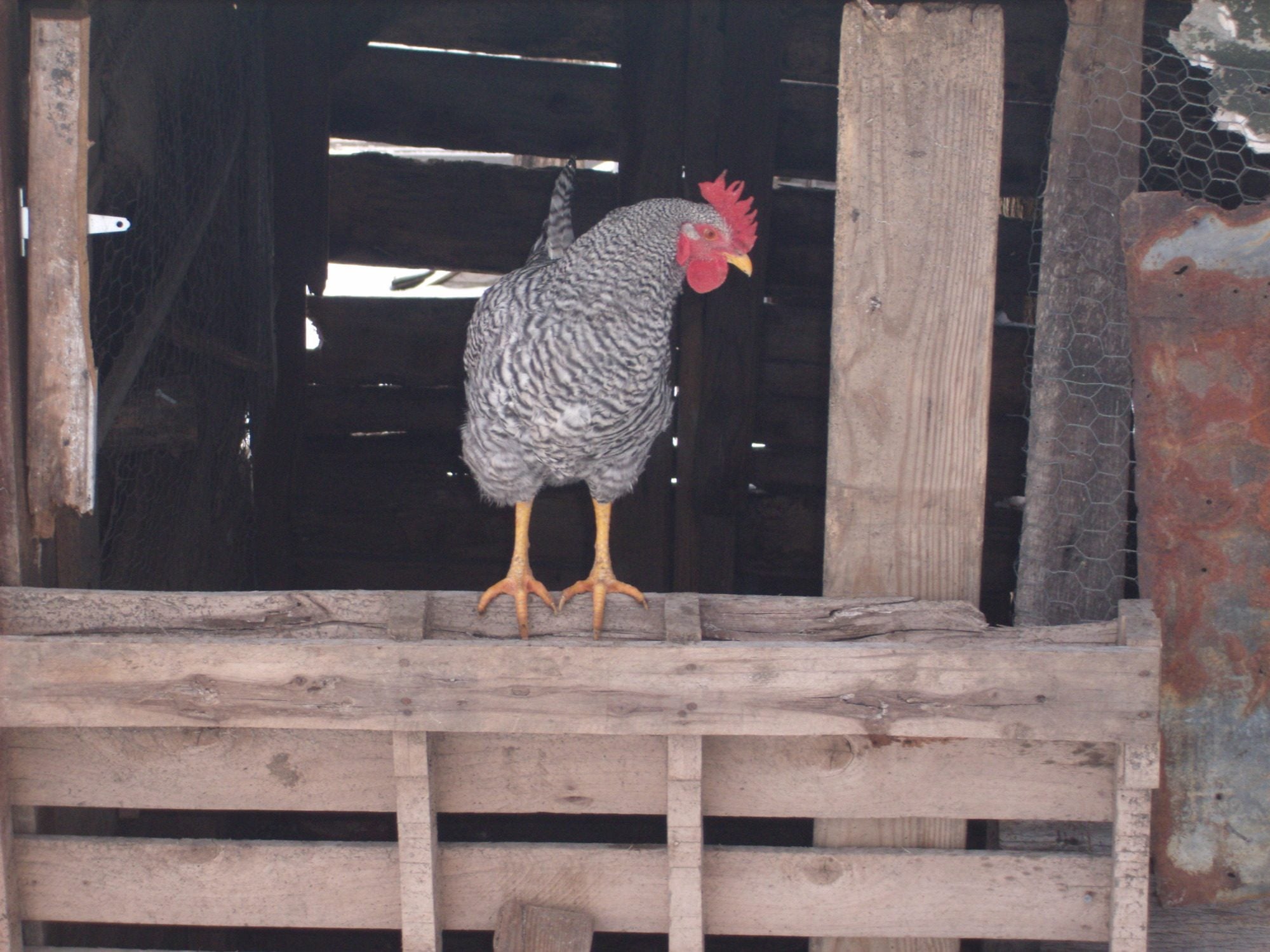 What beautiful birds! Barred Rocks rock.yeah. it's the only place to find peace. and ou can't see my coop from the house even though we only have a couple of acres because it is completely surrounded by trees. so it's a nice private place to read and it stays cool up there even in the summer. i only have one barred rock. Her name is Wind because she liked to run when she was young. she's a year old now. and i think she might've laid her first egg yesterday. this is her.