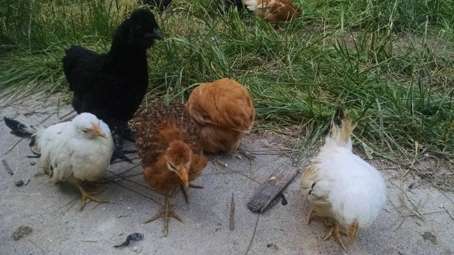No idea how old they are, I know the black fuzzy one is a silkie, and my FIL said the black fuzzy with the bare neck is a Turkish? So what are the rest? I have no idea how old they are or anything about them.