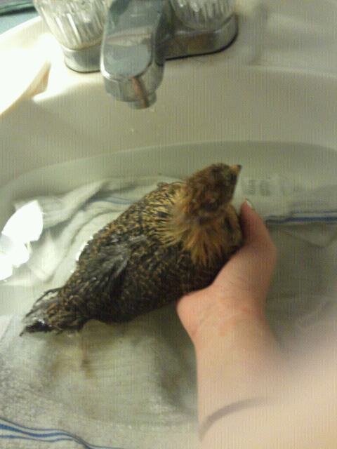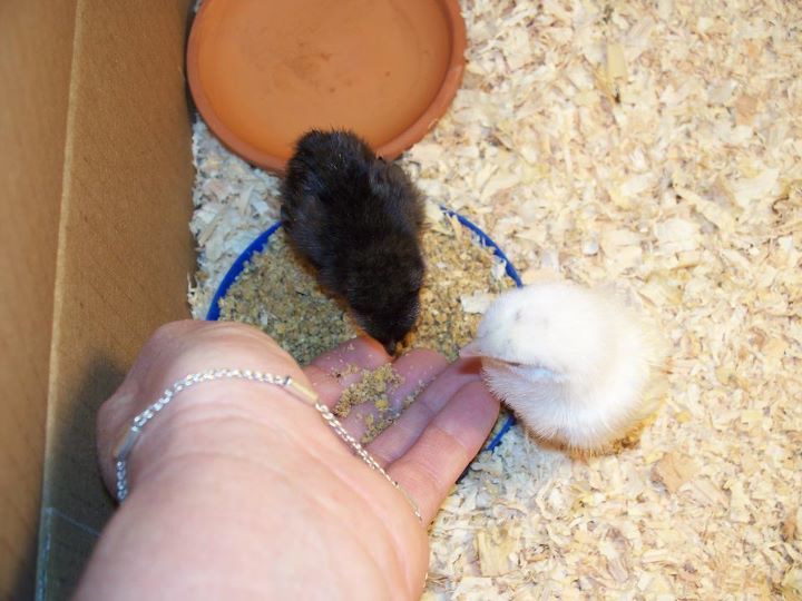 Washing the Chicks before they venture outside to live in Bannie mannor. They all thoroughly enjoyed this.
