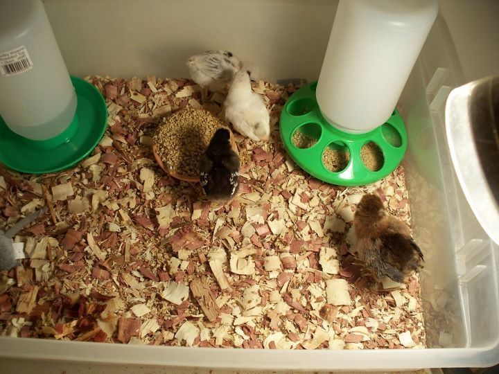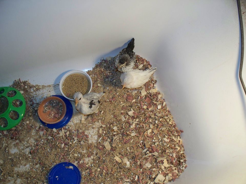 The First two Bantam chicks that my mom brought home, she got them for free because they were the smallest and very sick looking. They were cold and not eating, I think they had a hard time with the stress of being transported to the feed store. It's was too cold for them to stay outside, and we're in Arizona, so I told her to put them in my bathtub because I am away in college and I'm not using it anyways. This was in January. We had named the black chick Tina Turner, and the white chick Celine Dion, (They were loud peepers)