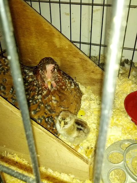 It's kinda chilly this morning so they're mostly staying warm under Mama. Here's a pic of Mama Veronica and two of her babies: