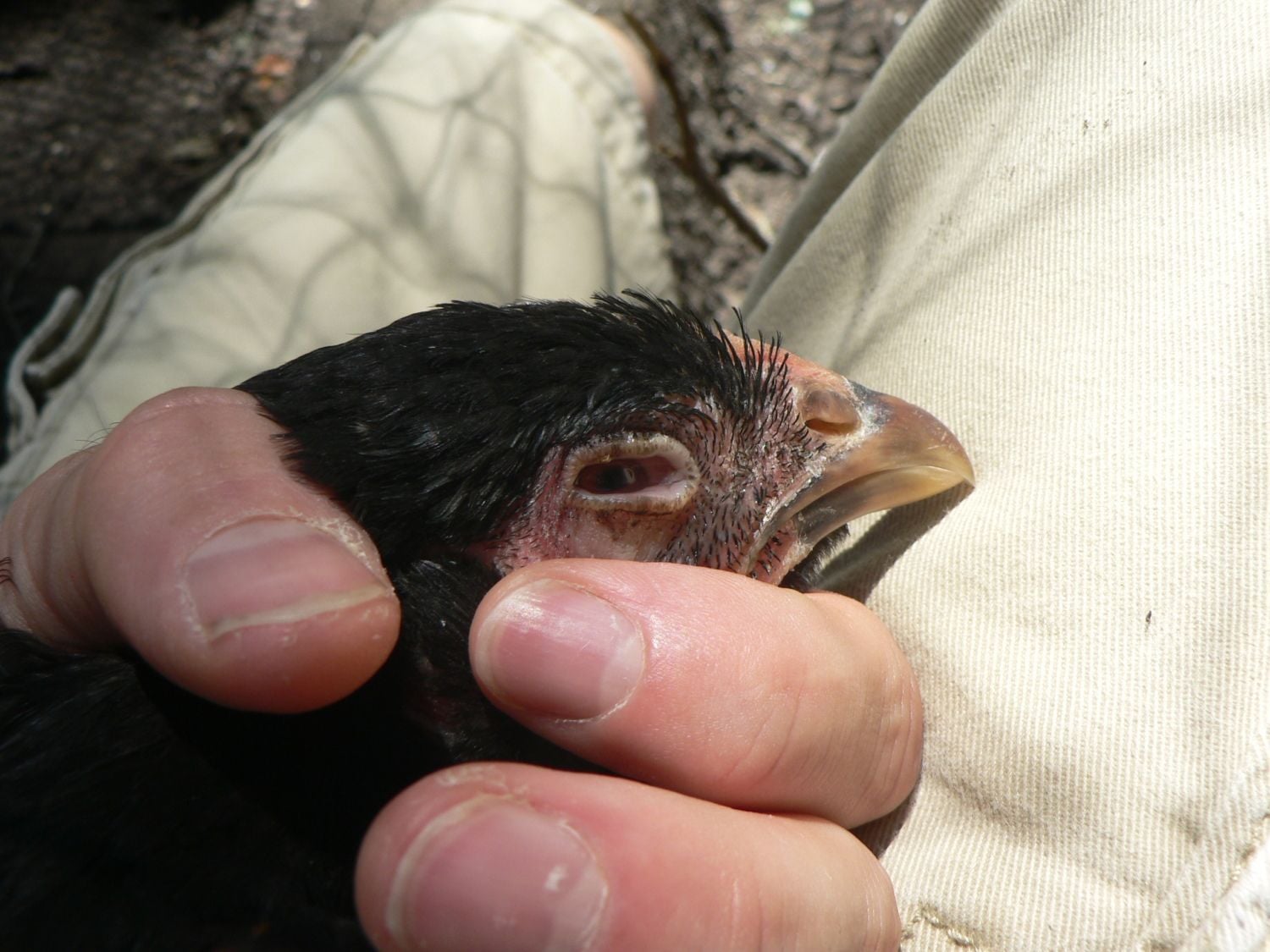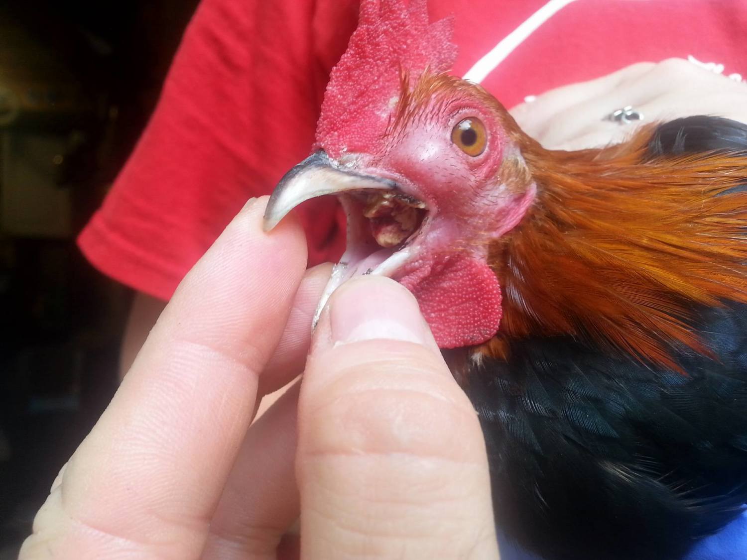 I have been medicating the flock for an unknown resp illness lately with Terra-vet and Sulmet. They are all getting better, but this is out of the blue and seemingly un-related. However I give you all the info I have. 70 birds and this is the only one with this issue. BTW, this is BB Red we expect to do great things. Would love to keep him. What is the problem? How to treat it?