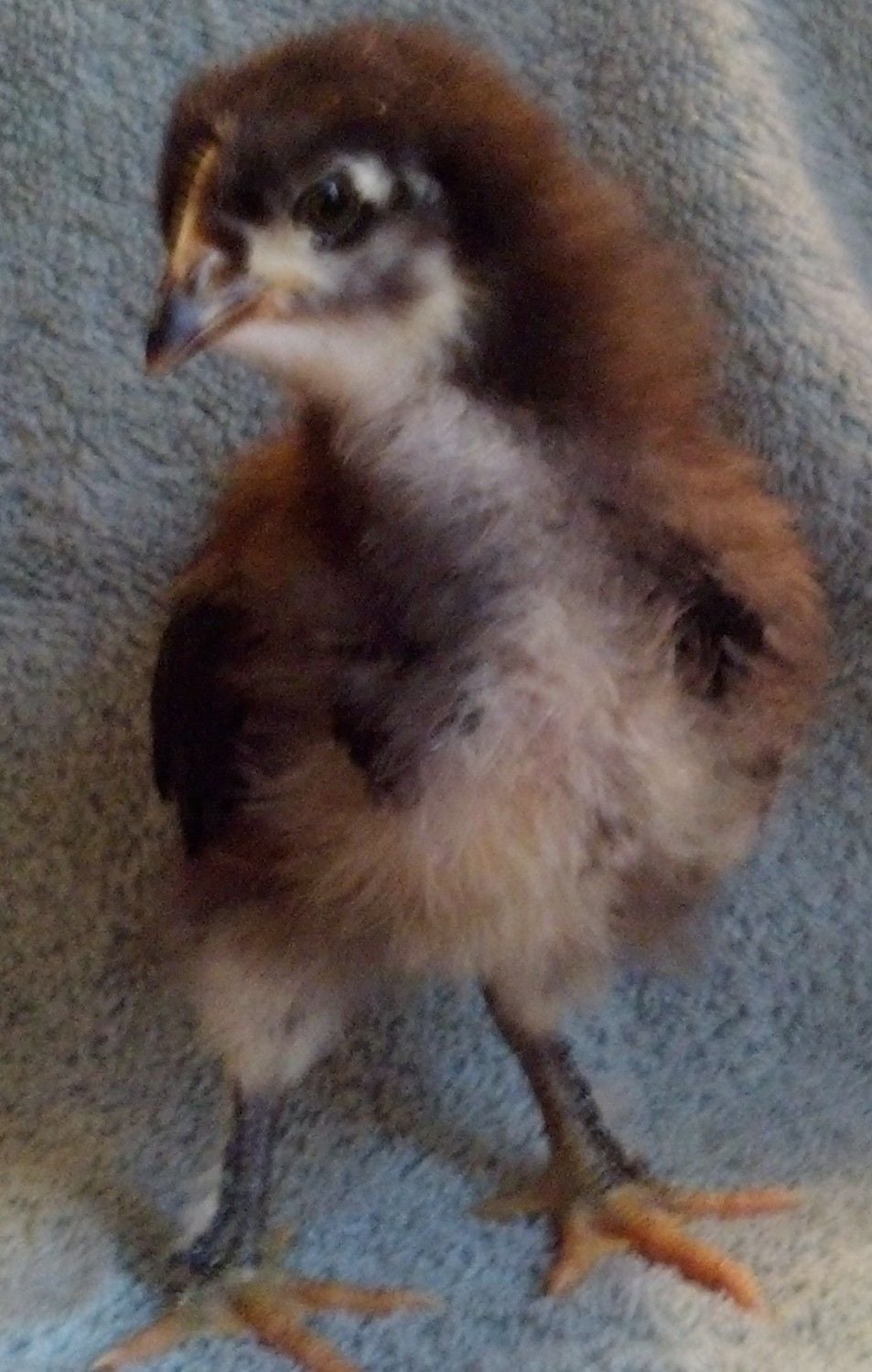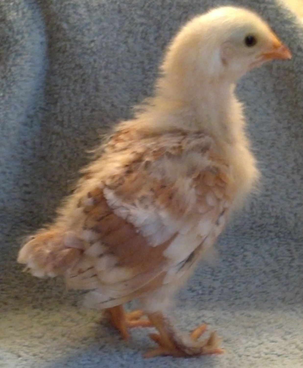 Wanted to update and move this into the raising baby chicks section and show off what I think is 1 roo and 3 hens. I put them in order of birth, 1st is Wheaton (we are not original name givers), next was CarolAnne who needs to be renamed (as you can see he has a large comb and legs that are twice the size of the other chicks), next came Penquin who has a very fluffy rump and has become the favorite, and last was Wheat Thin who almost didn't make it. Wheat Thin was trying to get out of her shell for almost 48 hours before I went in to help and didn't look like she was going to live. But low and behold she is now one fiery chick! She also has the best feathering right now!