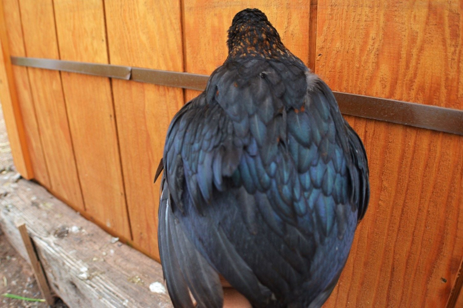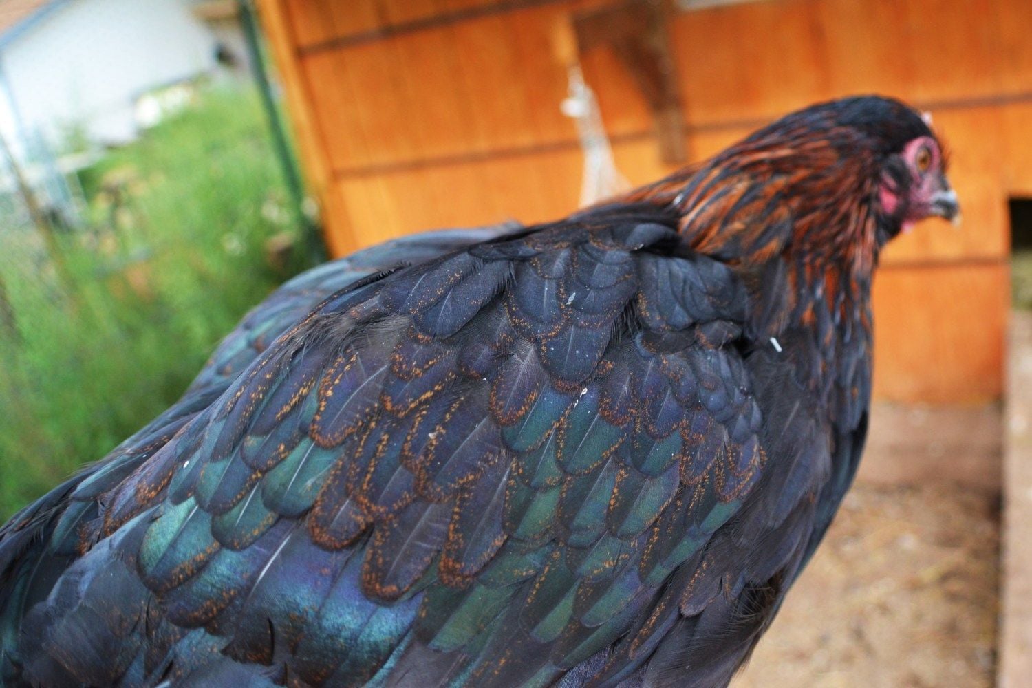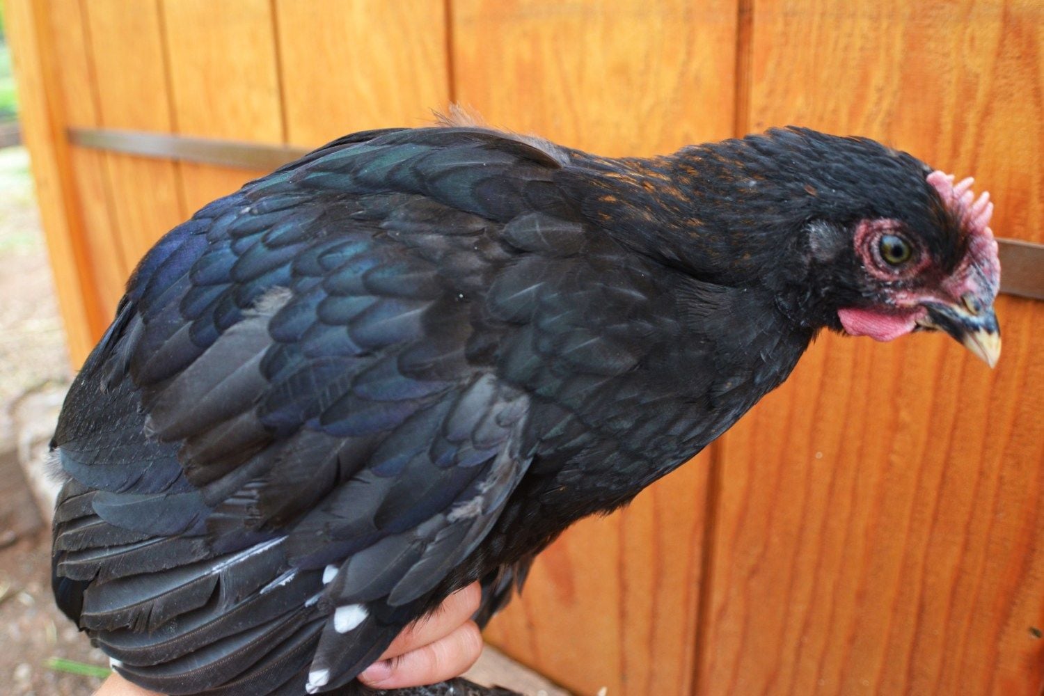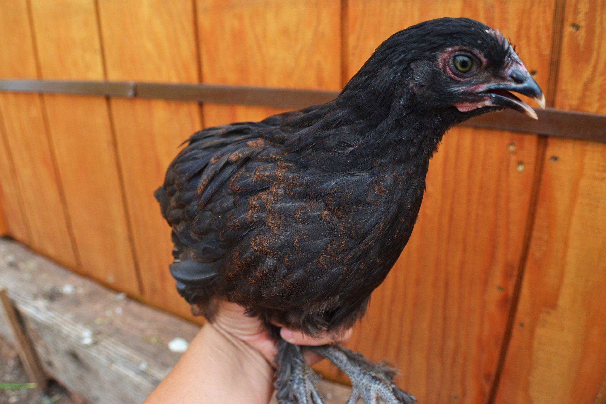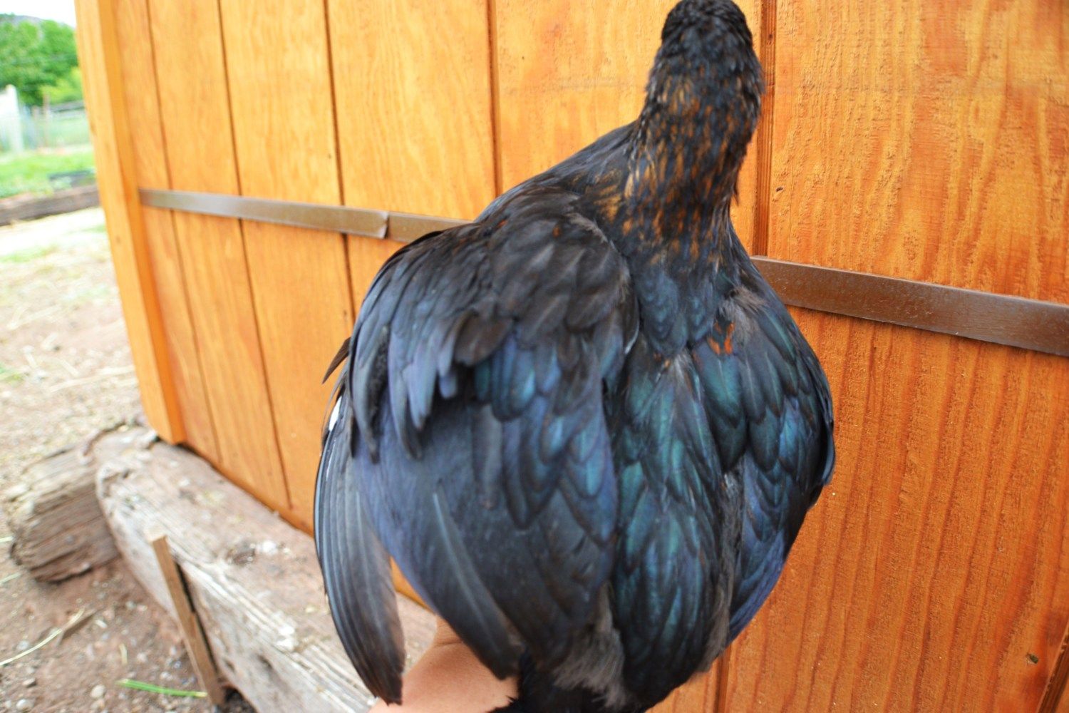 Update: Hey all, I just wanted to post another update on my mossy pullet, whom I named Mossy :) Here are some new pics of her, she's now over 14 weeks old. As she's grown it seems the mossiness has toned down quite a bit, blending more into the black of her feathers. I wonder if she'll lose more of that mossy edge every time she molts, it's interesting how much she has changed over the past 8 weeks. She is gorgeous! :drool