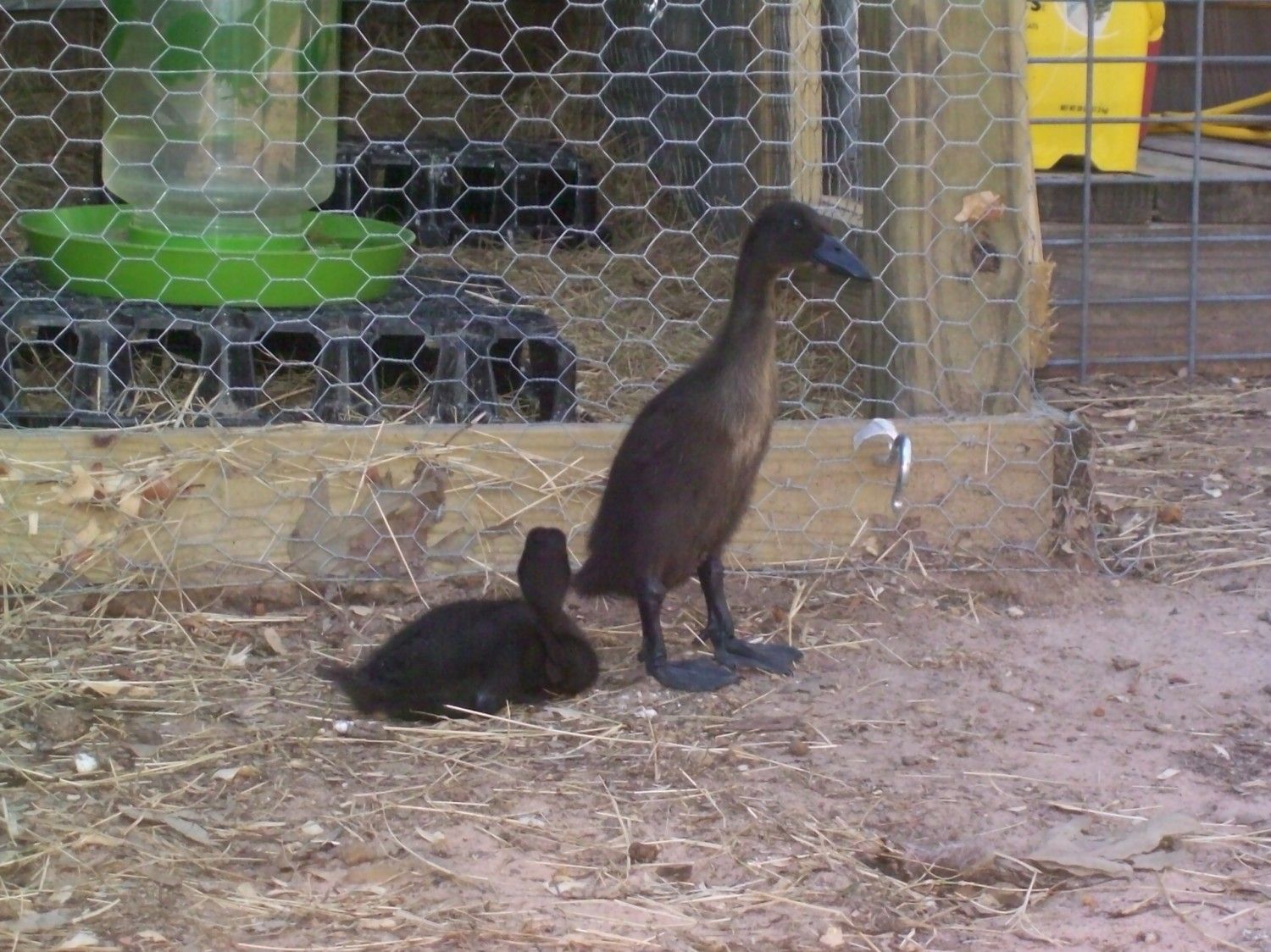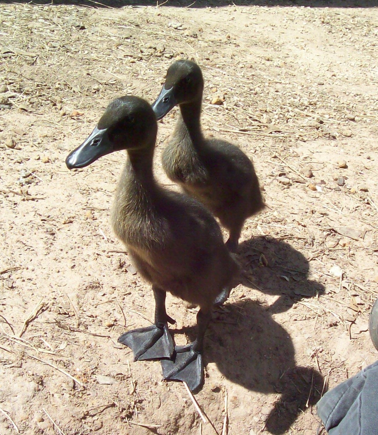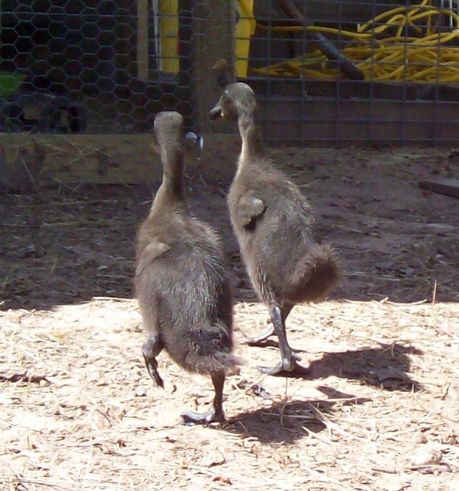 I only have two now. The other two ducks I gave to a friend of mine. They have hit that awkward feet stage. I noticed that today. It is adorable. It reminds me of when our Great Dane was growing through those puppy stages. Her feet looked just as big on her as their feet look on them. Their bill looks a bit disproportionate as well. These were taken today.