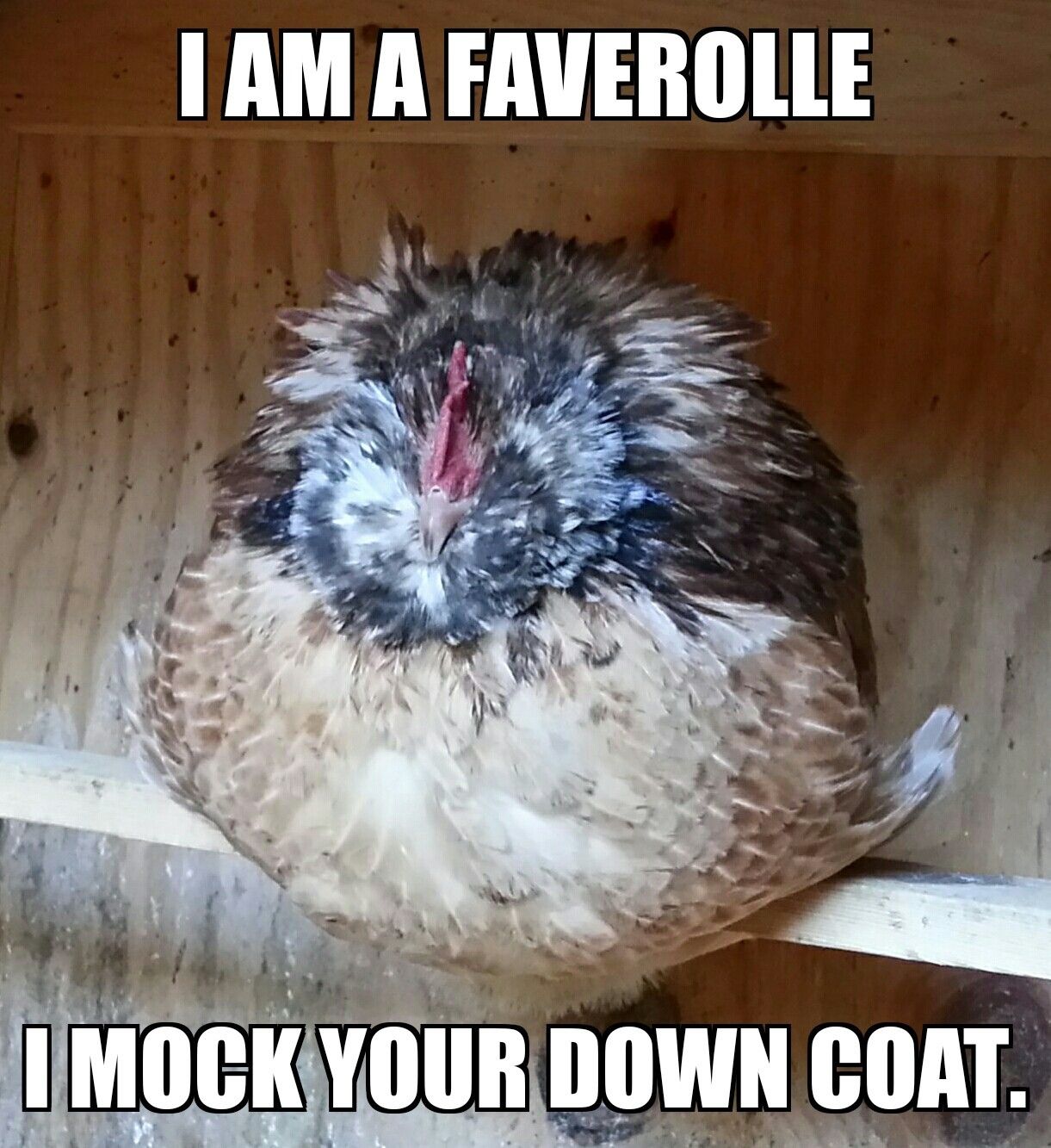 Noble Rooster said: I I yearn for fluffy chickens but I live in the desert where it gets up to 120 degrees in the summer so this poor guy would be a cooked chicken in no time! Click to expand...
