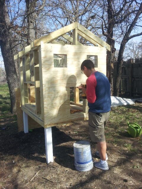 Slow going today. One wall partially up. Hoping to get the other three xcut and up tomorrow. Still lots to do after- making and installing the nesting boxes, adding trim, fascia and soffits, gutters, roof and shingles, making the pop door, painting, adding the doors and windows hardware, etc. It sure is a long process! But fun!