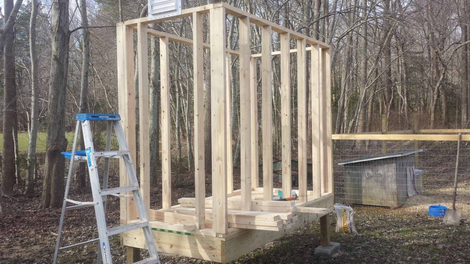 East entry where door will go and North wall with 16" centers. This wall is where the 3 coops will be going.