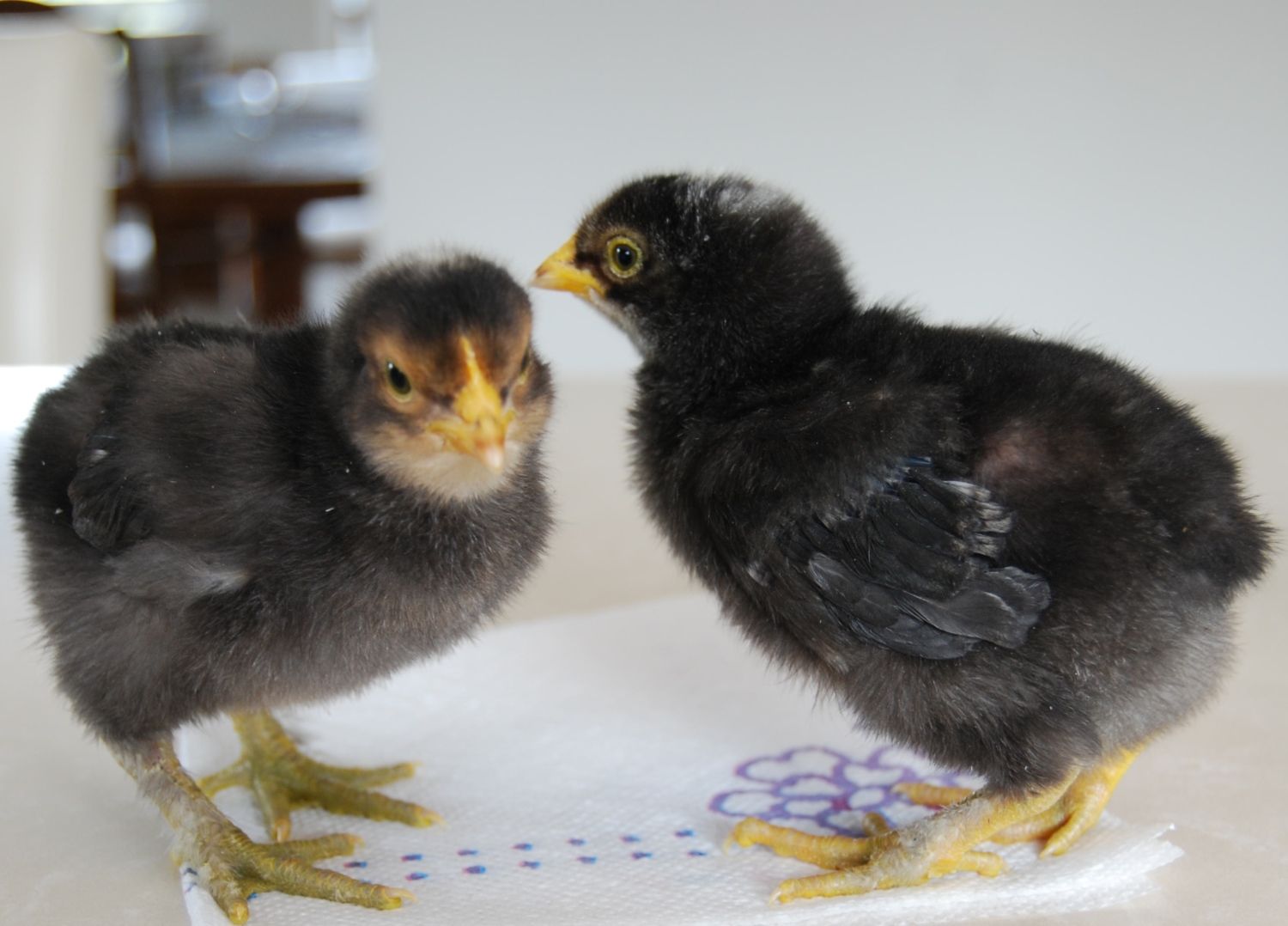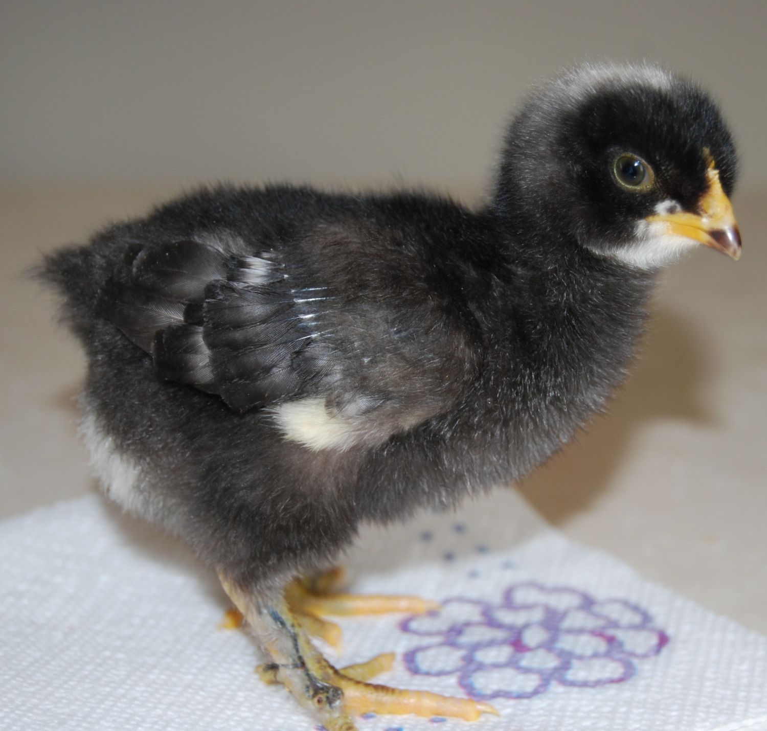 One week old now & no glue required, I swear! They sure know how to move in the brooder though!![]()