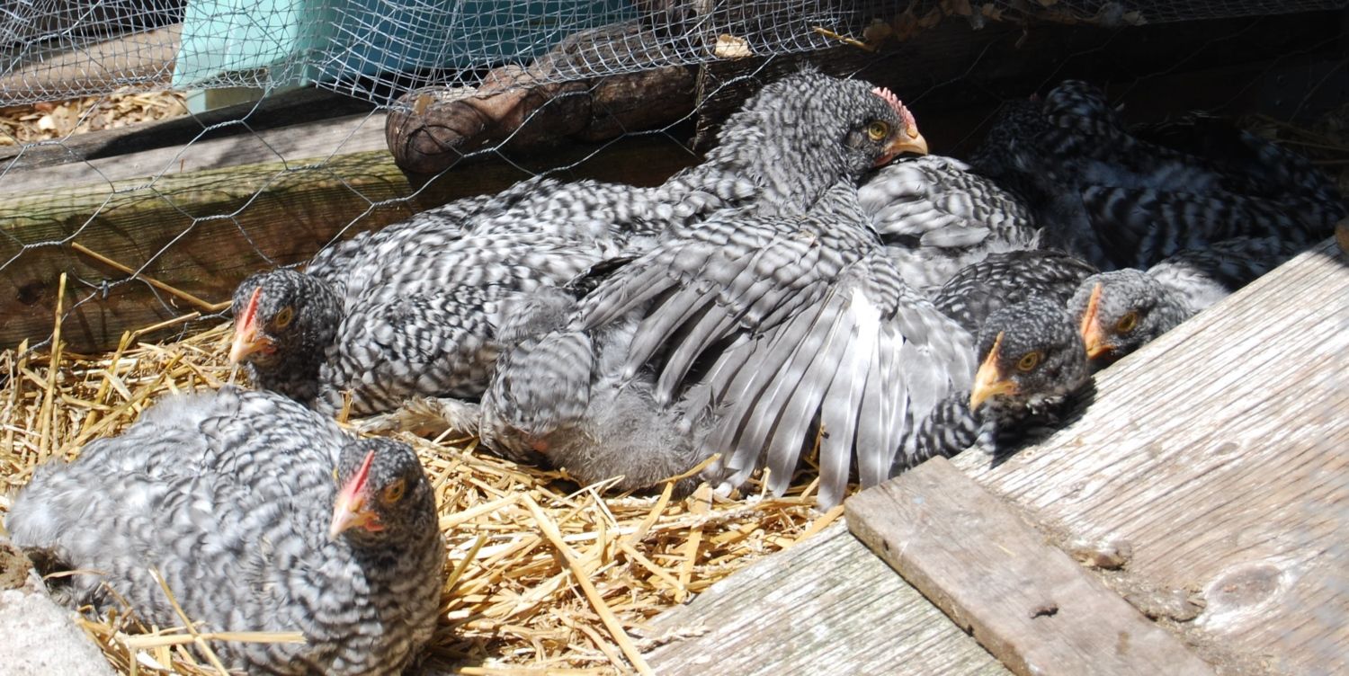 Here are some recent pics of the older crew & their first progeny. I have 2 different ages of chicks living together - 7 & 10 week olds in the grow-out coop & they've started foraging/free ranging with the nice weather.![]()