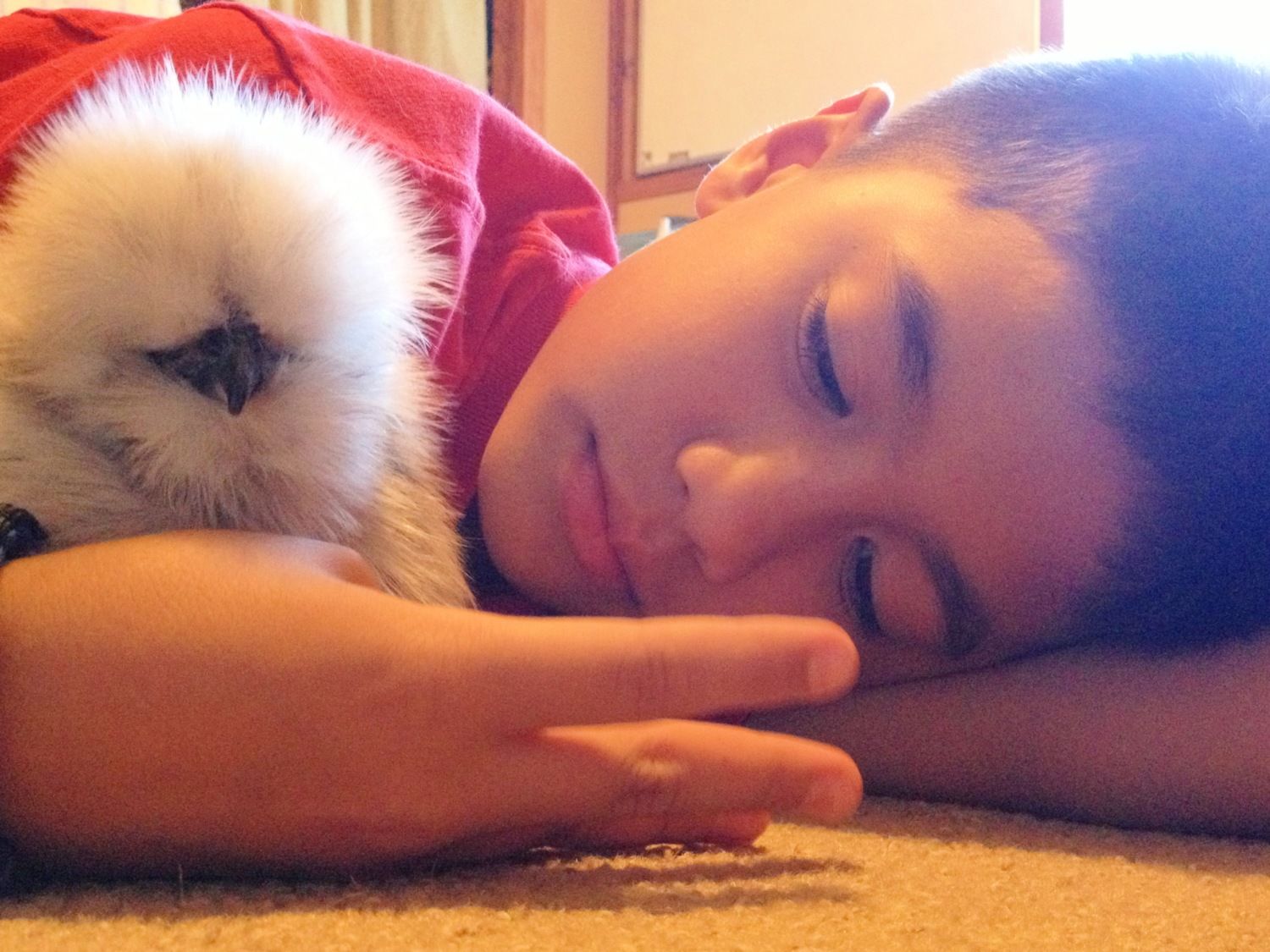 Mar 8, 2013 #23 Chillin Chick In the Brooder 6 Years Joined Feb 26, 2013 Messages 22 Reaction score 4 Points 26 Location Chuluota, FL My little guy dressed as a campfire marshmallow and his silkie as the campfire. Same sweet boy cuddling his baby girl.