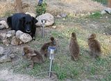 I wish I had a photo of these two in action but they mostly stay under the house in the daytime and come out at night. They do night patrol. They do have an odd assortment of poultry that live in the backyard with them and eat their food.