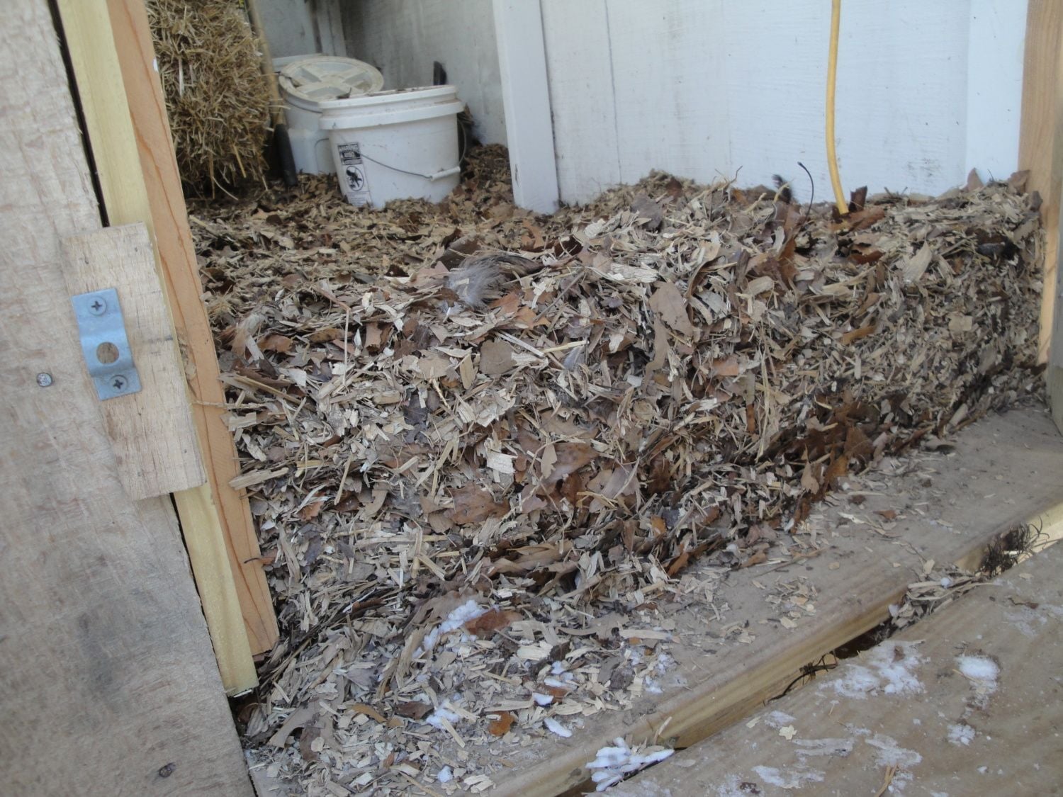 Edit to add a photo of my deep litter from last winter. This is right at the entrance so you can see that it's built up about 6 inches or so. The bottom layer is more compressed and the litter has been turned into tiny bits in the decomposition process. The top layer is fairly new and is mostly leaves. Hope this gives you a visual as to what deep litter looks like.
