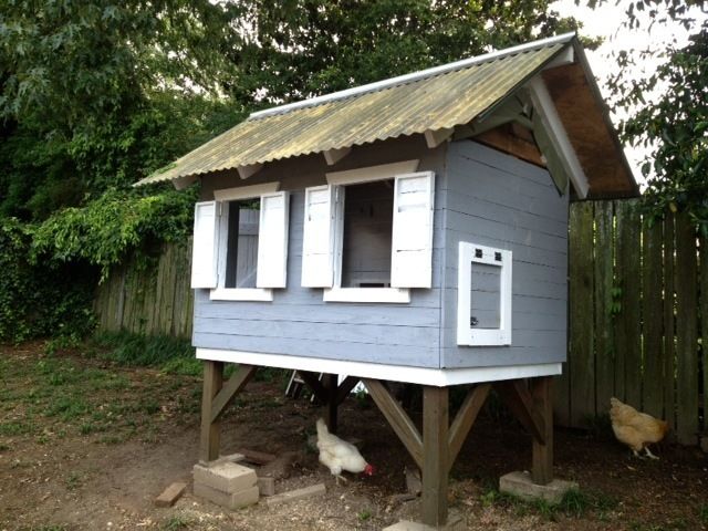 . May have to spray with polyurethane or something. Except fo the tin roof and hardware, the entire coop is made from pallet wood and reclaimed wood.