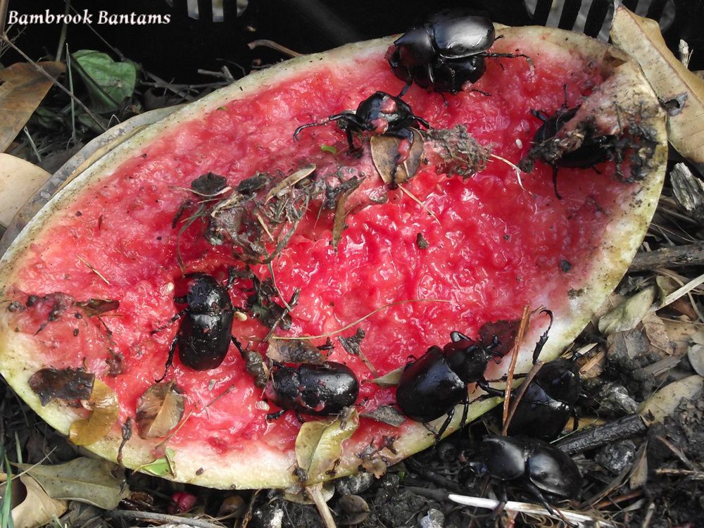 I threw what little was left of the girls watermelon in the compost bin last night.. Little did I know this morning, when I took the lid off to throw in the overnight chook poop, that I was crashing a party which, by the hissing and waving of legs, I was not invited to! LOL