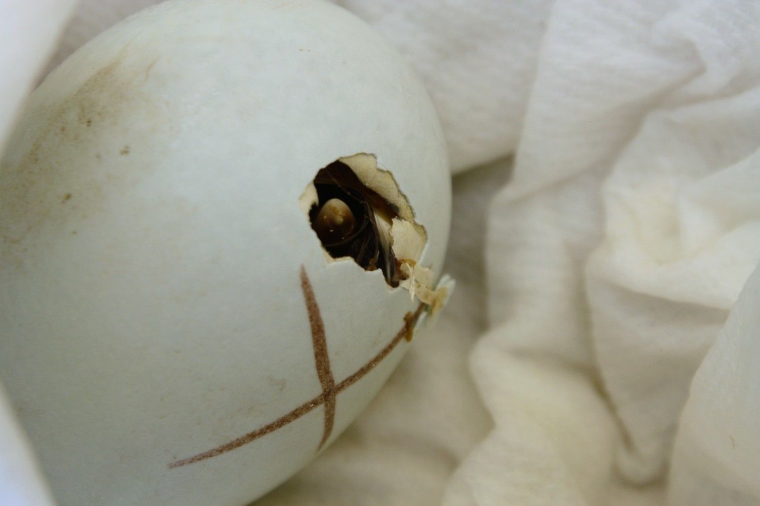The initial pip was to the northeast of the actual beak location, which is why I removed as much as seen here. And the ONLY reason I removed anything at all was to check for a shrink wrapped chick. Things are looking good and moist inside right now.